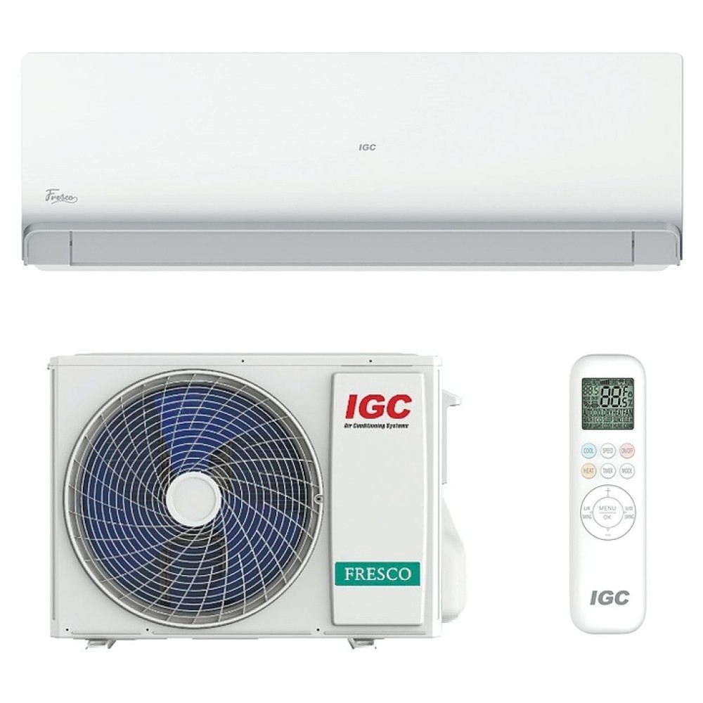 Настенная сплит-система IGC RAS-07NQR серии Fresco S предназначена для создания комфортных микроклиматических условий в жилых, служебных, административных, офисных и других помещениях. Кондиционер не только охлаждает или обогревает воздух, но и очищает его от посторонних запахов и нежелательных примесей. Модель оснащена встроенной LED-панелью индикации и инфракрасным пультом для управления всеми функциями на расстоянии. Корпус выполнен из ABS-пластика.