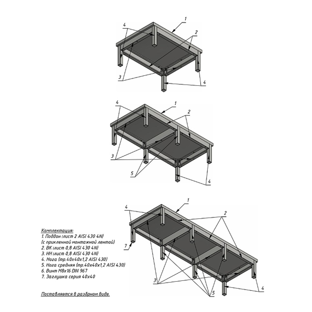Подтоварник Техно-ТТ ПТ-408/3 используется на предприятиях общественного питания и торговли для хранения сухих продуктов, посуды, различного кухонного инвентаря и оборудования. Низкая посадка и дополнительная пара ножек обеспечивают повышенную устойчивость. Каркас выполнен из трубы 40х40 мм из нержавеющей стали AISI 430, столешница - из нержавеющей стали AISI 430. Поставляется в разобранном виде.