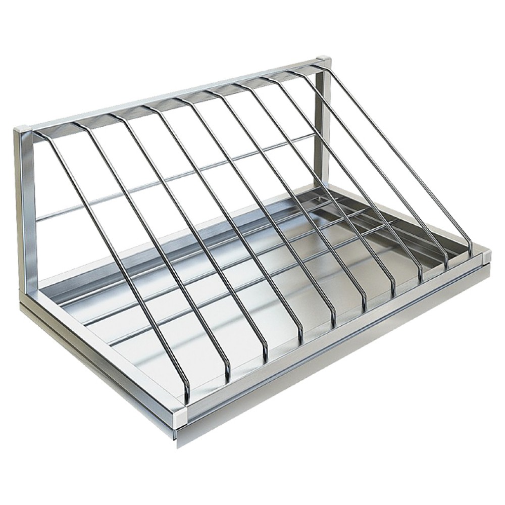 Кухонная полка Техно-ТТ ПН-117/600 предназначена для сушки и хранения разделочных досок на предприятиях общественного питания и торговли. Модель оснащена поддоном для сбора жидкости. Изделие крепится к стене при помощи шурупов. Сварной каркас выполнен из трубы 20х20 мм и прутка из нержавеющей стали AISI 304.