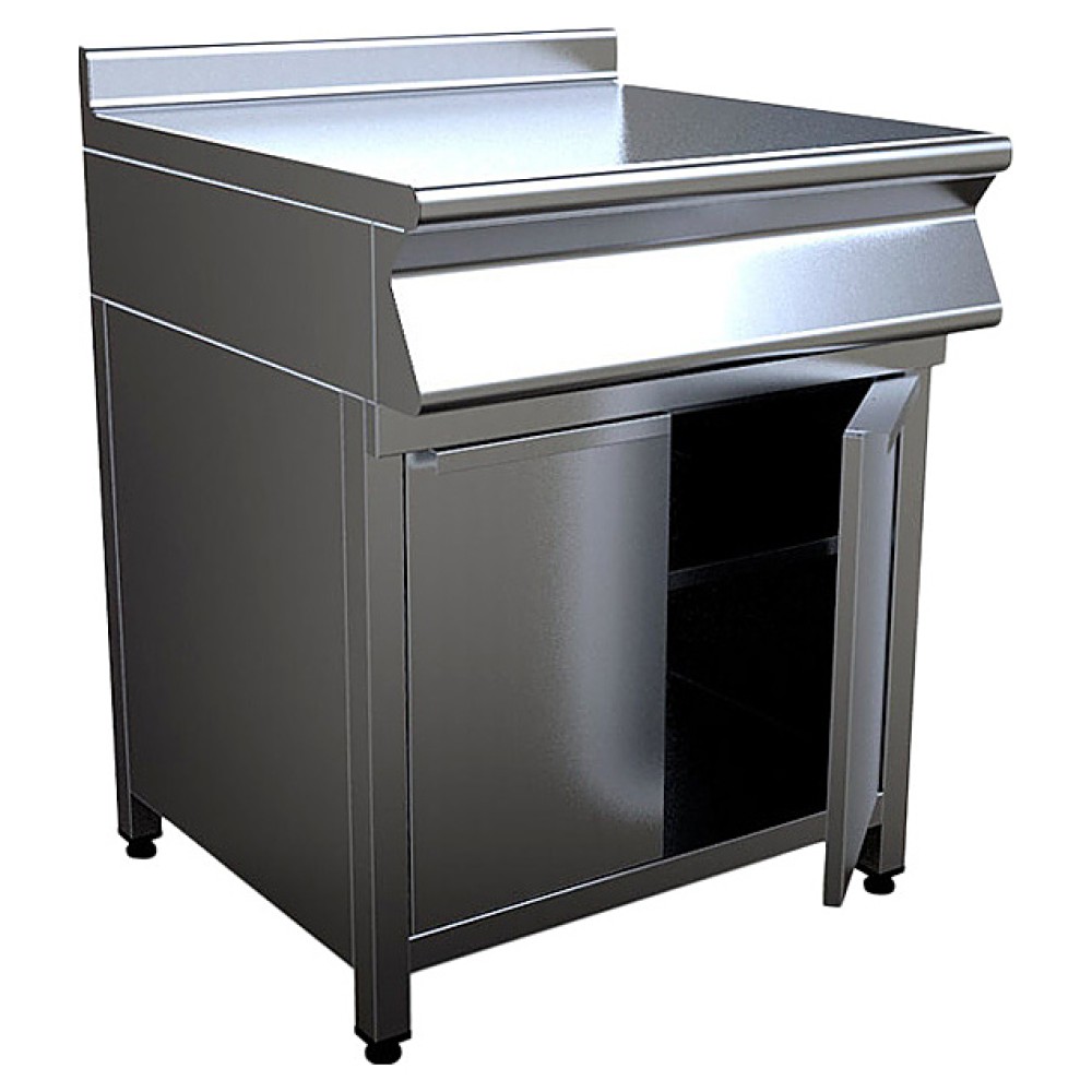 Закрытый нейтральный модуль Кобор N9-8E предназначен для использования в составе тепловой линии в качестве дополнительного места для раскатки теста, обработки ингредиентов для приготовления блюд, установки оборудования и приборов. Модуль оснащен сплошной полкой, распашными дверцами и регулируемыми по высоте ножками. Корпус выполнен из нержавеющей стали AISI 430, каркас - из профильной трубы 40х40 мм.