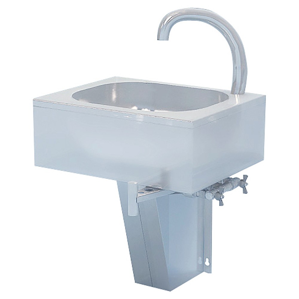 Консольный рукомойник ATESY ВРНК-500 используется на предприятиях общественного питания и торговли для мытья рук персонала. Модель оснащена рычагом, при нажатии на который бедром (ногой) из установленного на ванну носика поступает вода. Ванна выполнена из нержавеющей стали AISI 304 толщиной 0,8 мм.