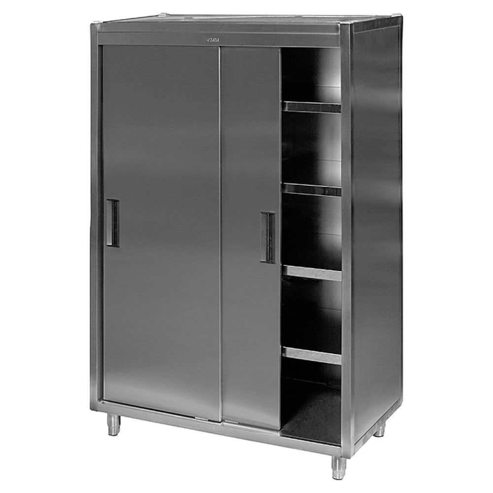 Кухонный шкаф ТММ ШВК 1200/600 предназначен для хранения продуктов, не требующих специального температурного режима, посуды и кухонных принадлежностей на предприятиях общественного питания и торговли. Оборудование оснащено дверями-купе. Модель полностью выполнена из нержавеющей стали.
