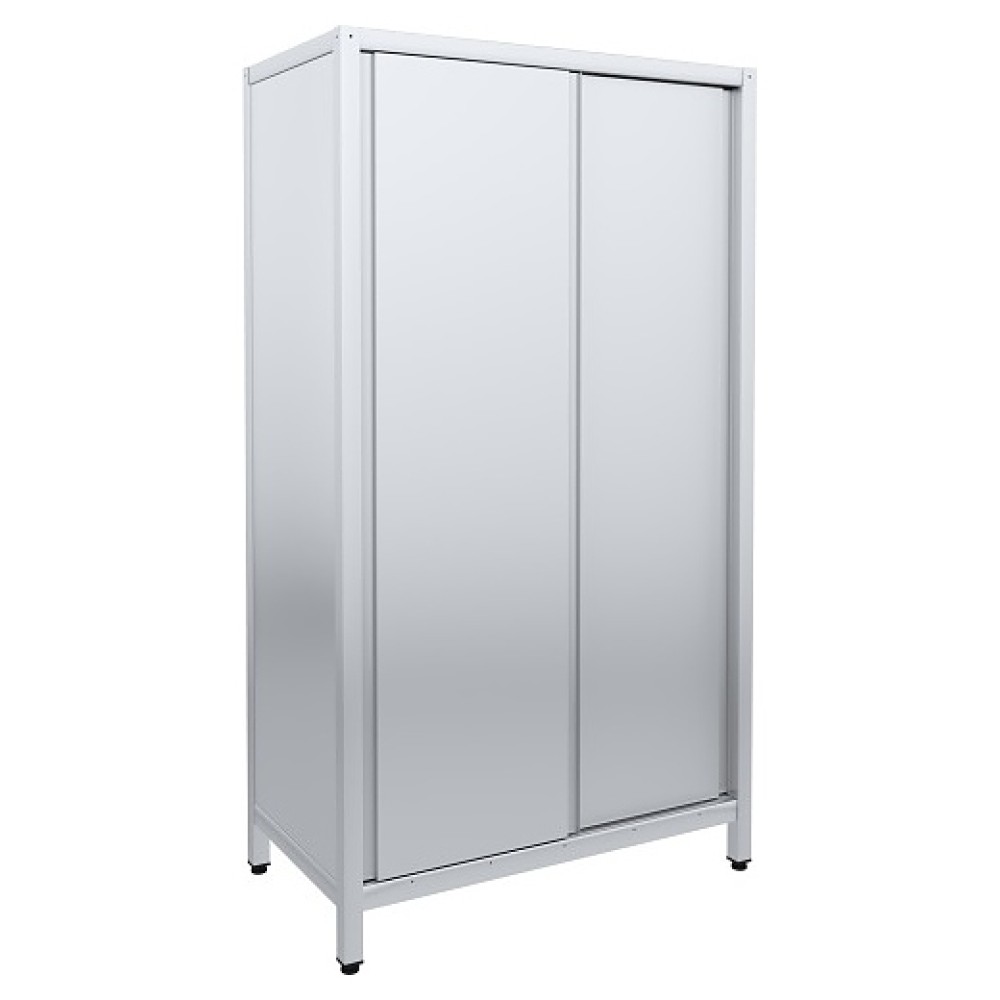 Кухонный шкаф ПищТех ШКН-К-Н-1000-01 предназначен для хранения посуды, хозяйственного инвентаря, пищевых продуктов в упаковке или функциональной таре на предприятиях общественного питания и торговли. Модель оснащена 2 дверьми-купе и перфорированной задней стенкой. Стенки, двери и полки выполнены из нержавеющей стали марки AISI430, каркас – из профиля трубы квадратного сечения из нержавеющей стали, упаковка – из гофрокартона и полимерной пленки. Изделие поставляется в разобранном виде.