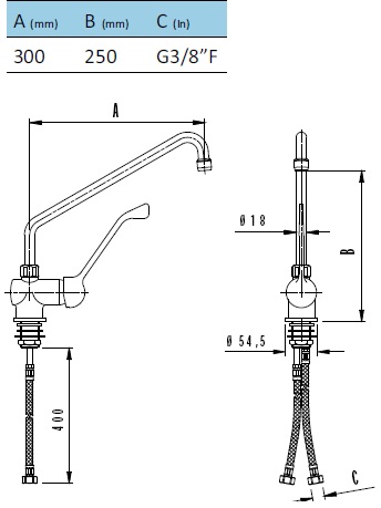 Смеситель Rubinetterie DEL FRIULI 00206302 предназначен для ежедневного использования и подачи воды на кухнях в пекарнях, столовых, кафе, ресторанах и на других предприятиях общественного питания. Смеситель устанавливается на моечную ванну или на стол-мойку.