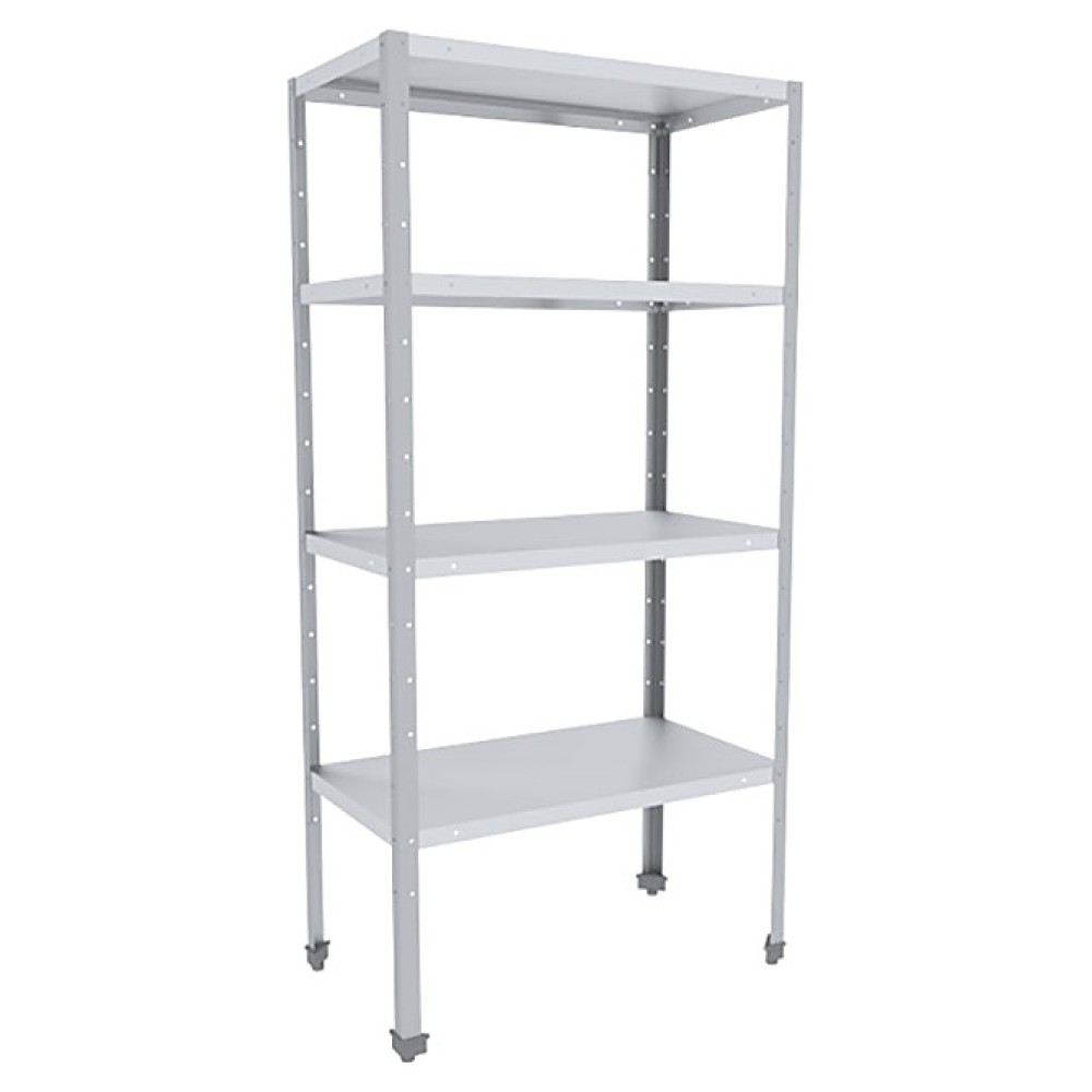 Кухонный стеллаж ПищТех Стандарт СКК-15/5 СЦК-С предназначен для использования в различных производственных цехах предприятий общественного питания, супермаркетах, комбинатах пищевой промышленности для хранения столовой посуды, а также продуктов в подсобных помещениях. Модель оснащена 4 сплошными полками и регулируемыми опорами, позволяющими компенсировать неровности пола при установке. Стойки изготовлены из уголка оцинкованной стали, полки - из нержавеющей стали AISI 430.