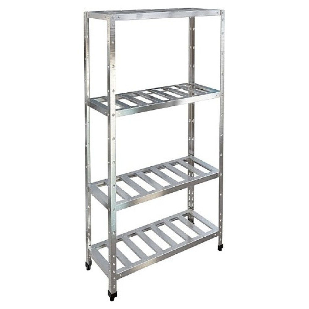Кухонный стеллаж Restoinox СТПР-14/5-ЭЦ предназначен для хранения посуды, инвентаря и продуктов, не требующих специального температурного режима, на предприятиях общественного питания и торговли. Модель оснащена 4 регулируемыми по высоте полками-решетками и регулируемыми по высоте пластиковыми опорами. Разборный каркас выполнен из уголка 40х40 мм оцинкованной стали, полки - из нержавеющей стали AISI 430.