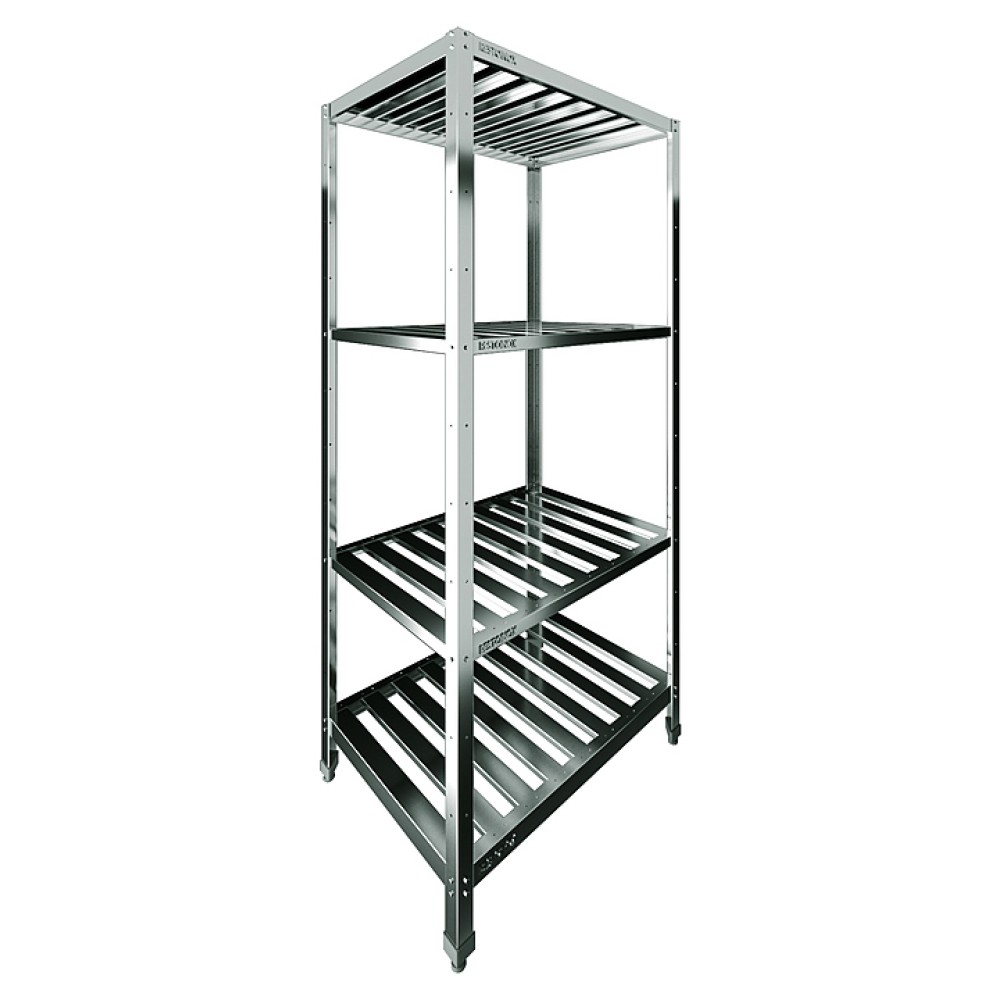 Кухонный стеллаж Restoinox СТПР-9/4-ЭЦ предназначен для хранения посуды, инвентаря и продуктов, не требующих специального температурного режима, на предприятиях общественного питания и торговли. Модель оснащена 4 регулируемыми по высоте полками-решетками. Разборный каркас выполнен из уголка 40х40 мм оцинкованной стали, полки - из нержавеющей стали AISI 430.