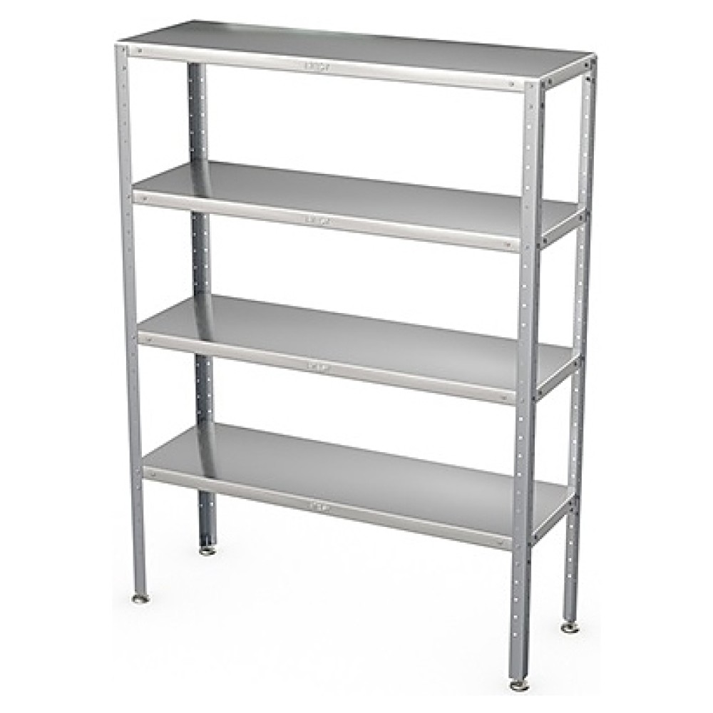 Кухонный стеллаж ATESY СТК-С-1500.400.1800-02 серии Стандарт предназначен для хранения посуды, различного инвентаря и сухих продуктов на предприятиях общественного питания и торговли. Сплошные полки выполнены из нержавеющей стали AISI 430 толщиной 0,8 мм, каркас - из оцинкованной стали толщиной 1,2 мм, ножки - из нержавеющей стали, опора ножек - из пластика.