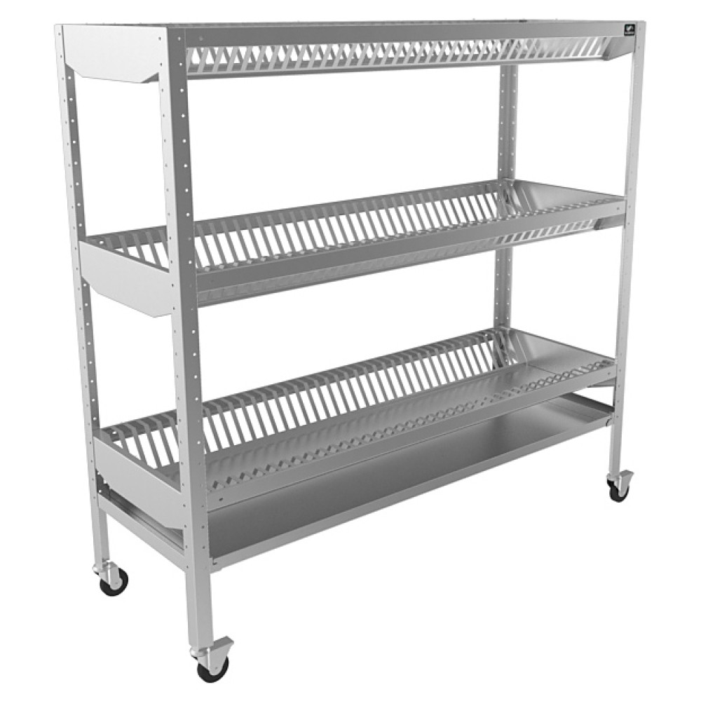 Стеллаж Кобор СДПК-100/53/430 предназначен для хранения и сушки тарелок на предприятиях общественного питания и торговли. Модель оснащена съемным поддоном для слива воды и колесами. Каркас выполнен в виде уголка из нержавеющей стали AISI 430, полки - из нержавеющей стали AISI 430.