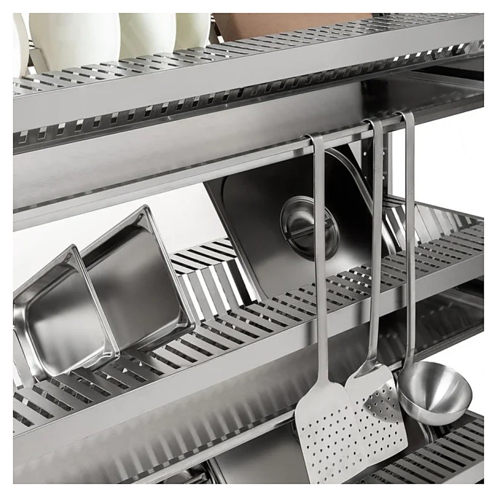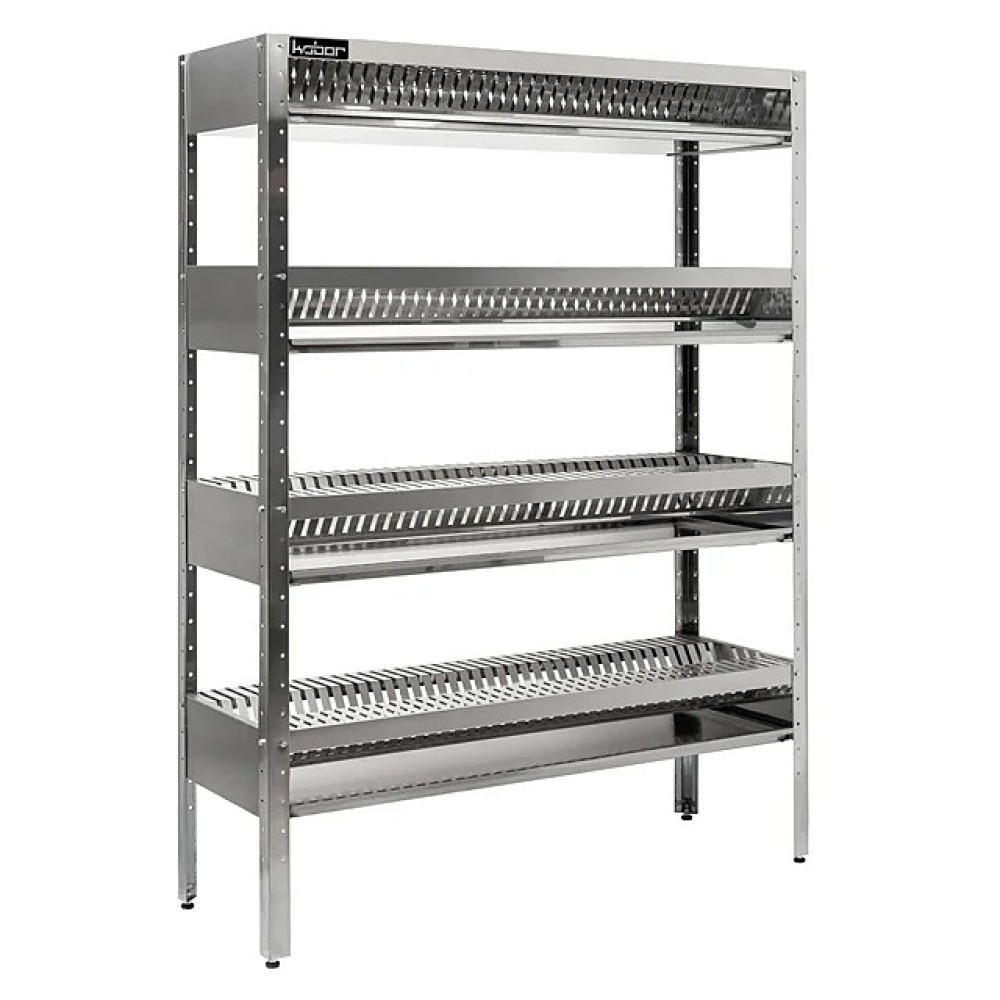Стеллаж Кобор СКС-90/30/430 предназначен для хранения и сушки тарелок на предприятиях общественного питания, торговли и в промышленно-производственных помещениях. Каркас выполнен в виде уголка 40х40 мм из нержавеющей стали, полки - из нержавеющей стали AISI 430. Уникальная система крепления полок обеспечивает жёсткость конструкции стеллажа.