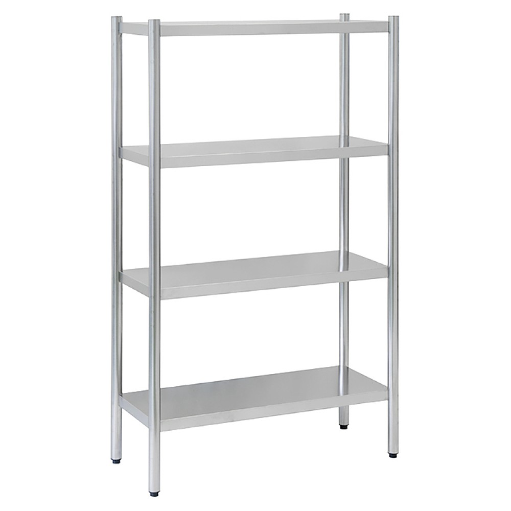 Кухонный стеллаж ATESY СТК-П-950.400.1600-02 серии Престиж предназначен для хранения посуды, различного инвентаря и сухих продуктов на предприятиях общественного питания и торговли. Полки выполнены из нержавеющей стали AISI 430 толщиной 0,8 мм, каркас - из трубы диаметром 40 мм из нержавеющей стали AISI 201, ножки - из нержавеющей стали, опора ножек - из пластика.