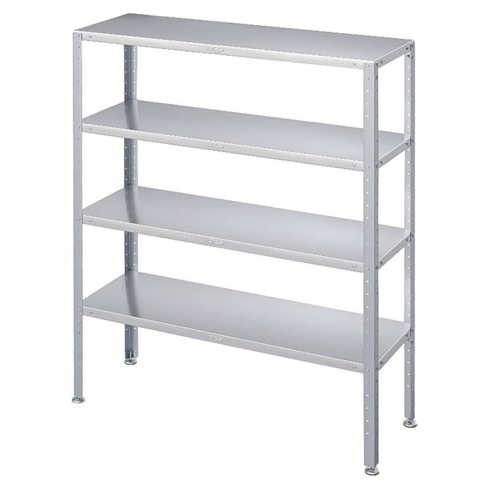 Кухонный стеллаж ATESY СТК-С-1100.400.1800-02 серии Стандарт предназначен для хранения посуды, различного инвентаря и сухих продуктов на предприятиях общественного питания и торговли. Модель оснащена 4 полками и 4 стойками. Сплошные полки выполнены из пищевой нержавеющей стали AISI 430 толщиной 0,8 мм, каркас - из оцинкованной стали толщиной 1,2 мм, опора ножек - из пластика.