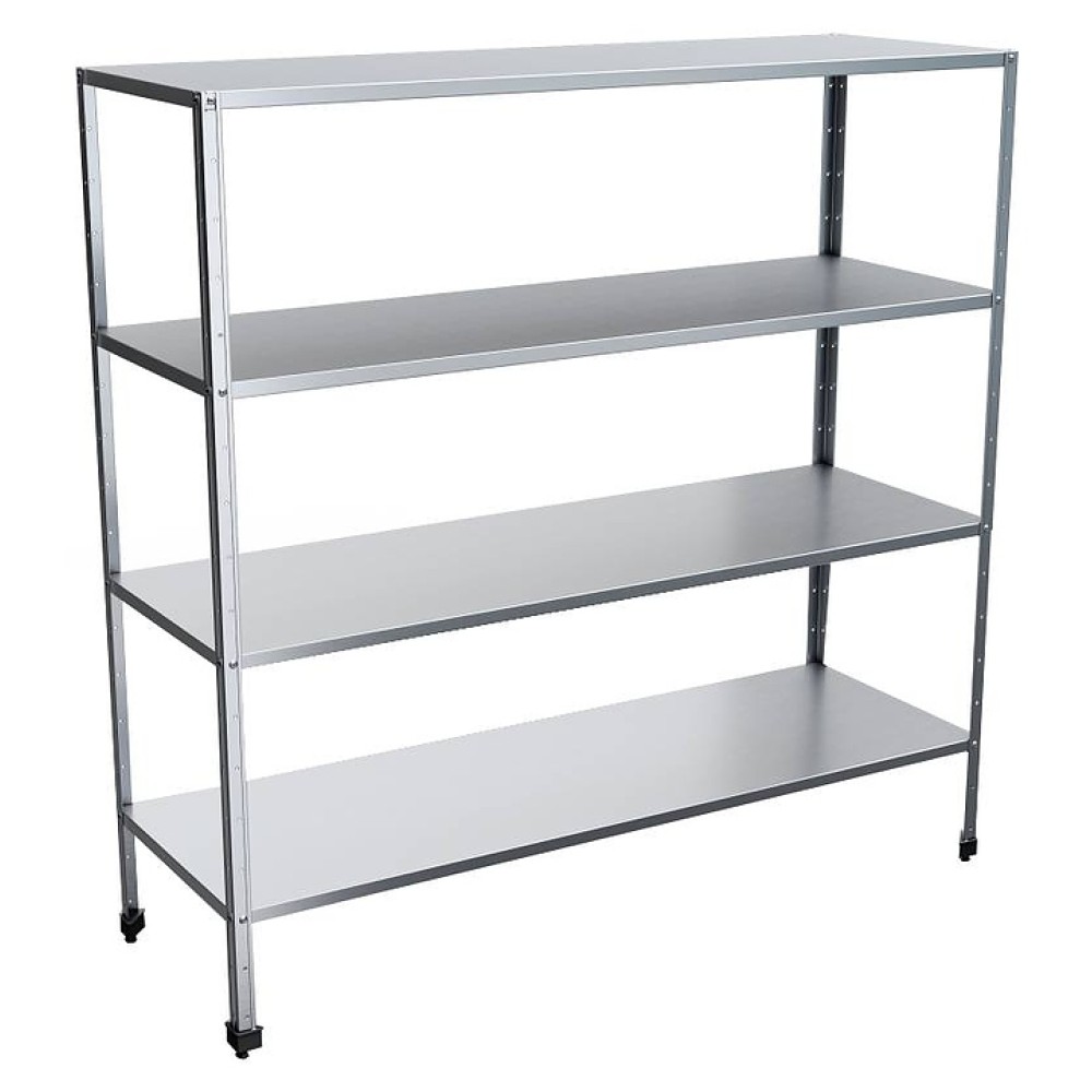 Кухонный стеллаж Rada СКСПЧ-17/5/0,4/0,4/18-4С предназначен для хранения посуды, инвентаря и сухих продуктов на предприятиях общественного питания и торговли. Разборный каркас выполнен из тубы 40x40 мм нержавеющей стали AISI 430, полки - из нержавеющей стали AISI 430.