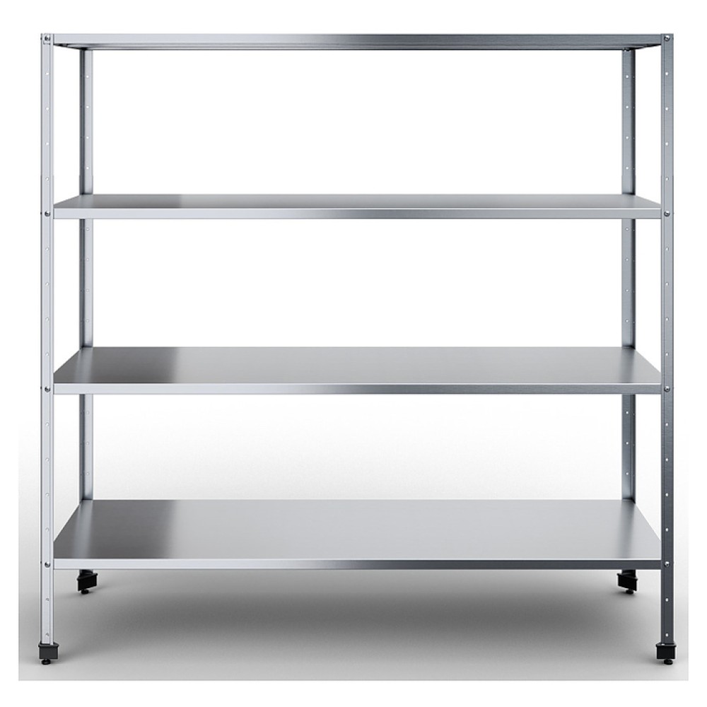 Кухонный стеллаж Rada СКСПЧ-18/4/0,4/0,2/18-4П предназначен для хранения посуды, инвентаря и сухих продуктов на предприятиях общественного питания и торговли. Разборный каркас выполнен из тубы 40x20 мм нержавеющей стали AISI 430, полки - из нержавеющей стали AISI 430.