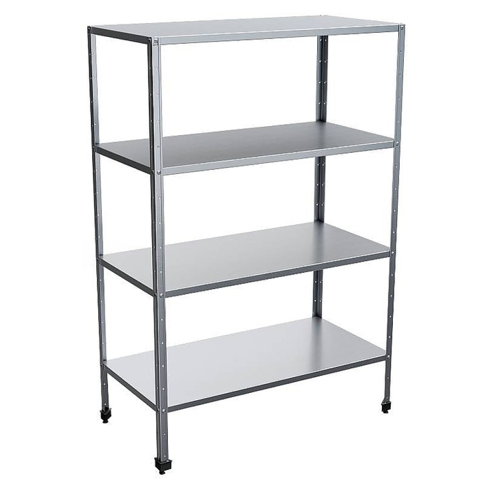 Кухонный стеллаж Rada СКСУЧ-10/4/18-4П предназначен для хранения посуды, инвентаря и сухих продуктов на предприятиях общественного питания и торговли. Разборный каркас выполнен из уголка 40x40 мм нержавеющей стали AISI 430, полки - из нержавеющей стали AISI 430.