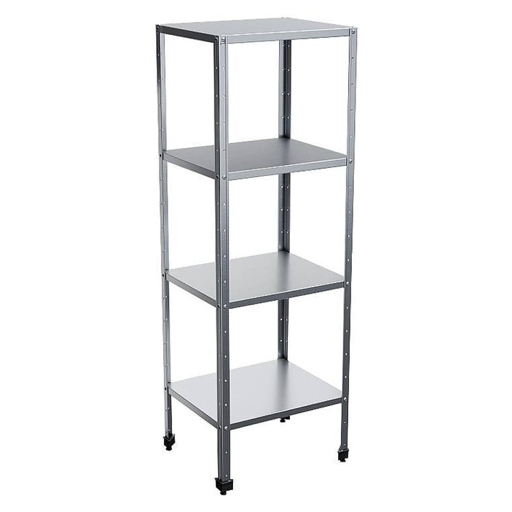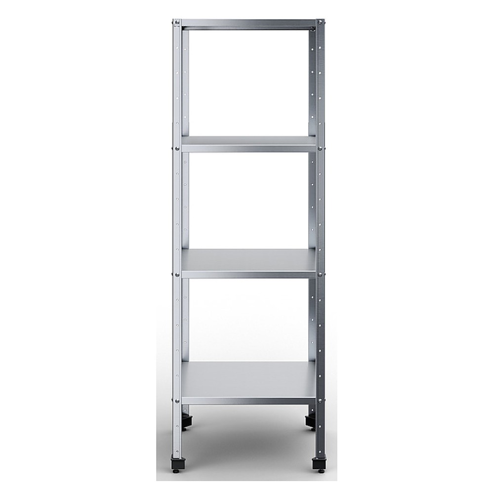 Кухонный стеллаж Rada СКСУЧ-7/4/18-4П предназначен для хранения посуды, инвентаря и сухих продуктов на предприятиях общественного питания и торговли. Разборный каркас выполнен из уголка 40x40 мм нержавеющей стали AISI 430, полки - из нержавеющей стали AISI 430.