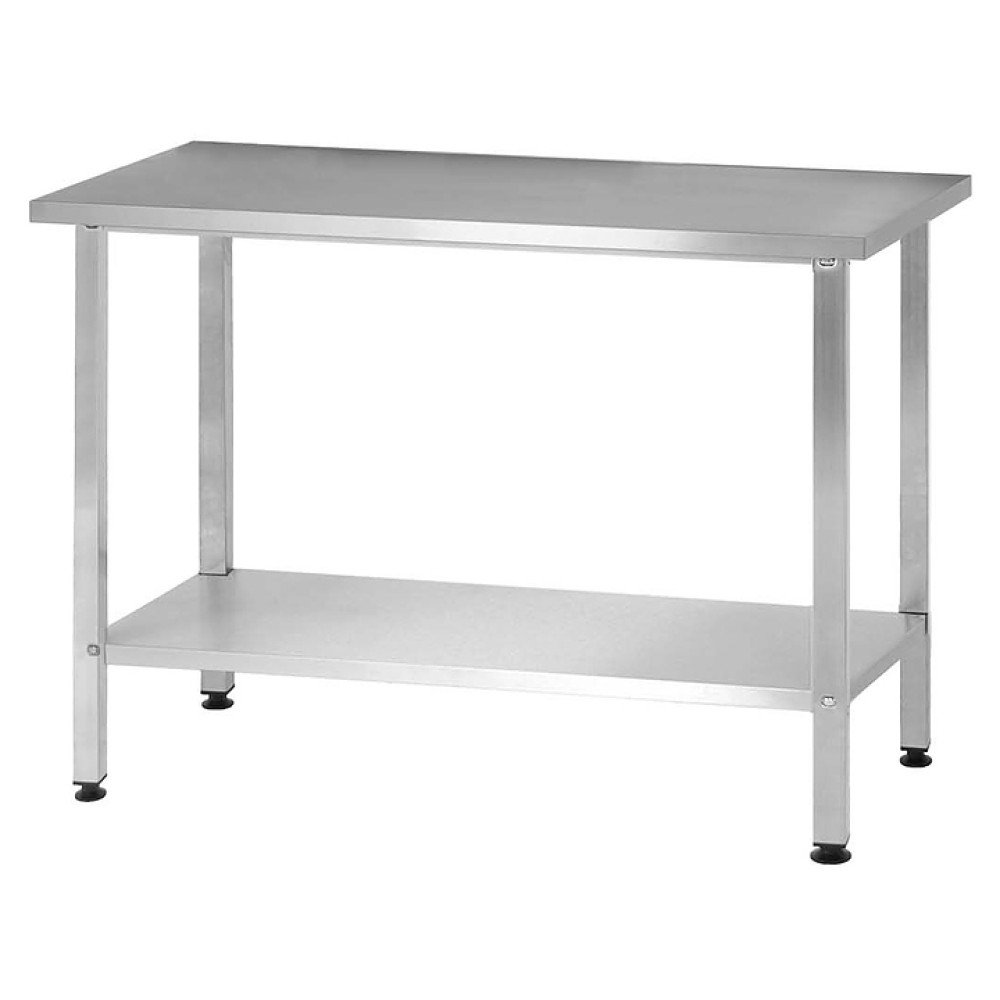 Производственный стол Mecon Norma Inox СПРн предназначен для разделывания и обработки пищевых продуктов, а также в качестве вспомогательной поверхности для кухонного оборудования на предприятиях пищевой промышленности, общественного питания и торговли. Модель оснащена усиленной сплошной полкой и регулируемыми по высоте полиамидными опорами. Ножки выполнены из профильной трубы 40х40 мм нержавеющей стали с базирующими пуклевками, столешница - из шлифованной пищевой нержавеющей стали AISI 430 с усилением подложкой из ЛДСП, полка - из нержавеющей стали.