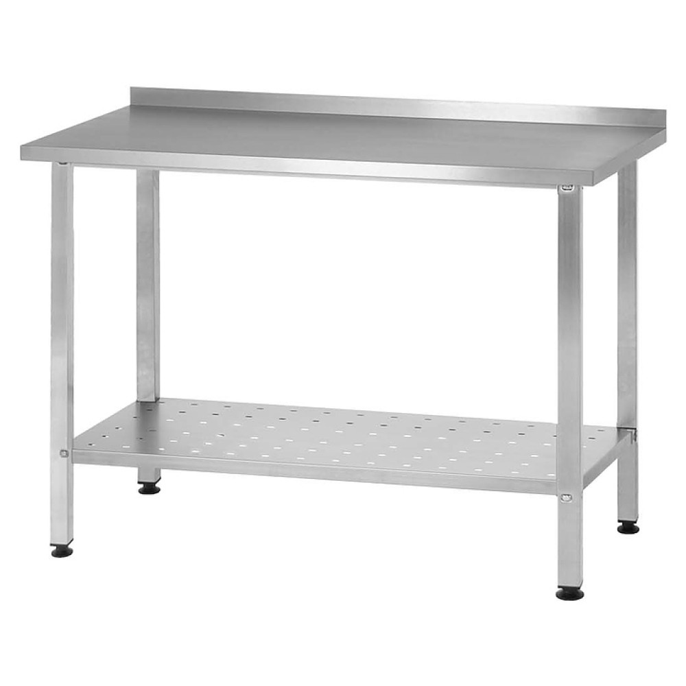 Производственный стол Mecon Norma Ral СПРн предназначен для разделывания и обработки пищевых продуктов, а также в качестве вспомогательной поверхности для кухонного оборудования на предприятиях пищевой промышленности, общественного питания и торговли. Модель оснащена усиленной перфорированной полкой и регулируемыми по высоте полиамидными опорами. Ножки выполнены из профильной трубы 40х40 мм с полимерно-порошковым покрытием с базирующими пуклевками, столешница - из шлифованной пищевой нержавеющей стали AISI 430 с усилением подложкой из ЛДСП, полка - из стали с полимерно-порошковым покрытием.