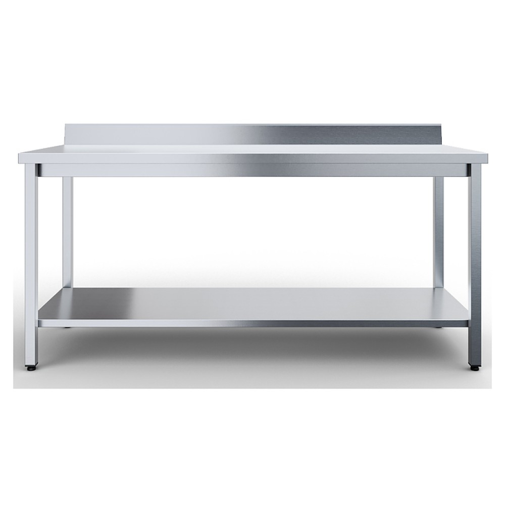 Стол Rada СТПУЧ-17/6-С предназначен для обработки продуктов питания, раскатки теста и хранения кухонной техники на предприятиях общественного питания и пищевой промышленности. Модель оснащена регулируемыми по высоте ножками, съемным бортом и сплошной полкой. Каркас выполнен из уголка нержавеющей стали AISI 430, столешница и полка из нержавеющей стали AISI 430 толщиной 0,8 мм, столешница усилена подложкой из фанеры толщиной 16 мм.