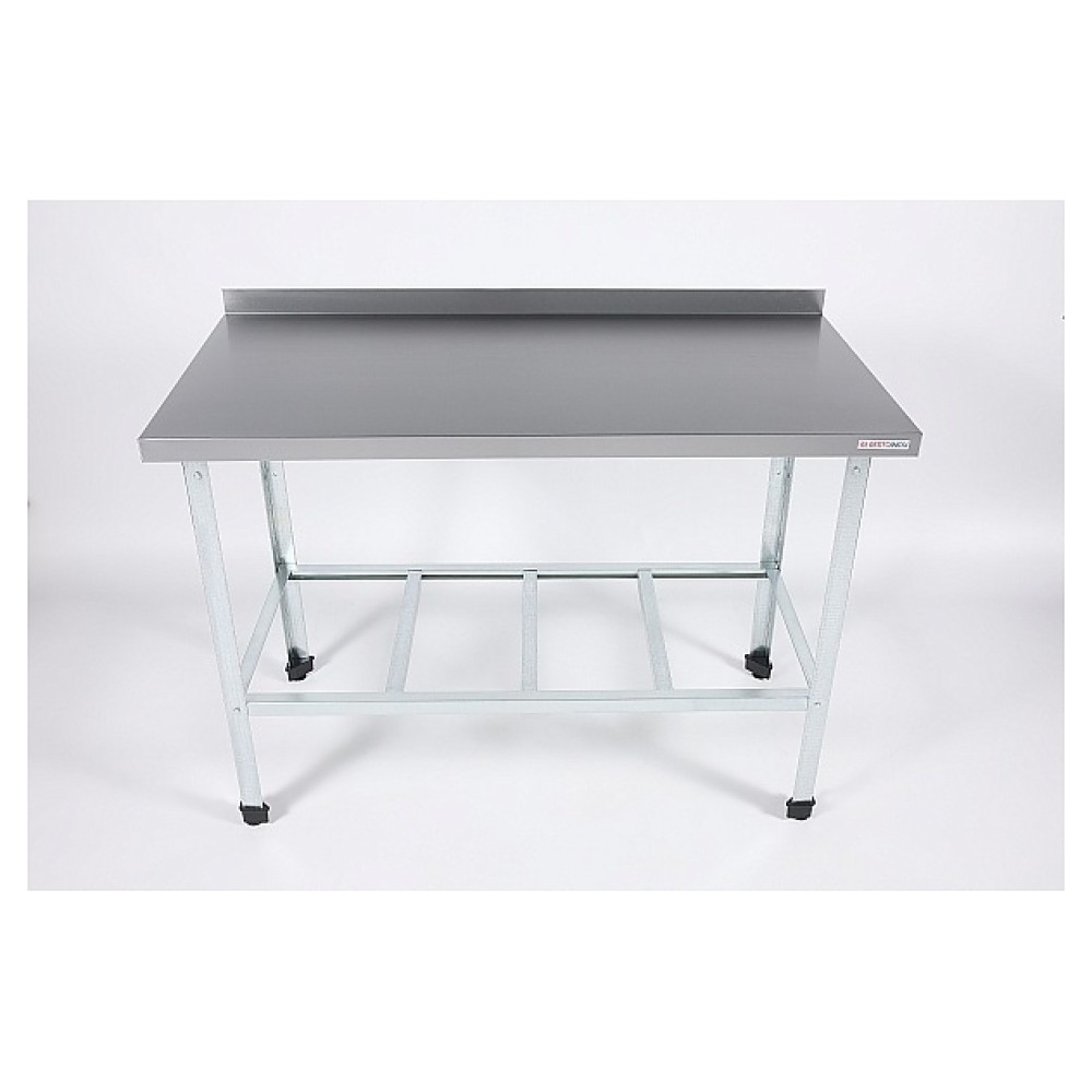 Производственный островной стол Restoinox СП-12/8-БР-ЭК предназначен для обработки продуктов питания, раскатки теста и хранения кухонного инвентаря, также для размещения малогабаритного оборудования на предприятиях общественного питания и торговли. Модель оснащена бортом и полкой-решеткой. Ножки выполнены из уголка 40х40 мм из оцинкованной стали, рабочая поверхность - из нержавеющей стали Aisi 430, решетка - из оцинкованной стали, столешница усилена листом ДСП.