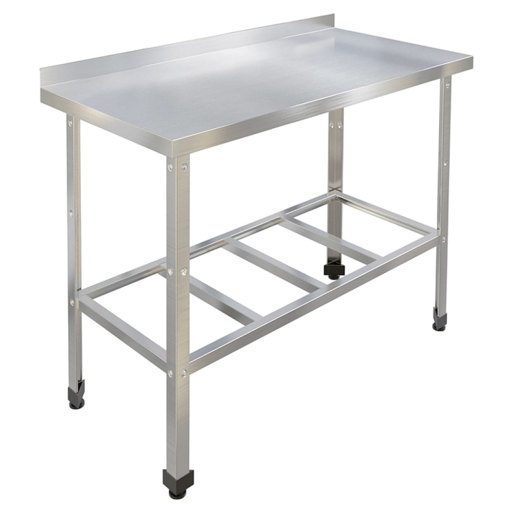 Производственный островной стол Restoinox СП-14/6-БР-ЭЦ серии 600 предназначен для обработки продуктов питания, раскатки теста и хранения кухонного инвентаря, также для размещения малогабаритного оборудования на предприятиях общественного питания и торговли. Модель оснащена бортом и полкой-решеткой. Ножки выполнены из уголка 40х40 мм из оцинкованной стали с пуклевкой, рабочая поверхность - из нержавеющей стали Aisi 430, решетка - из оцинкованной стали, столешница усилена листом ЛДСП.