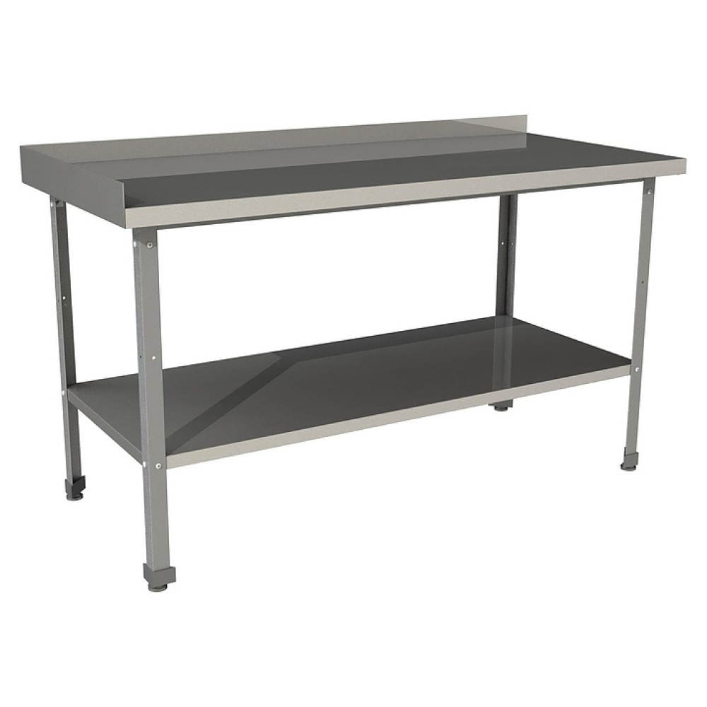 Производственный стол Restoinox СП-15/7-2БПЛ-ЭЦ предназначен для обработки продуктов питания, раскатки теста и хранения кухонного инвентаря, также для размещения малогабаритного оборудования на предприятиях общественного питания и торговли. Модель оснащена бортами с 2 сторон и сплошной полкой, усиленной ребром жесткости из оцинкованной стали. Ножки выполнены из уголка 40х40 мм из оцинкованной стали с пуклевкой, рабочая поверхность и полка - из нержавеющей стали Aisi 430, столешница усилена листом ЛДСП.