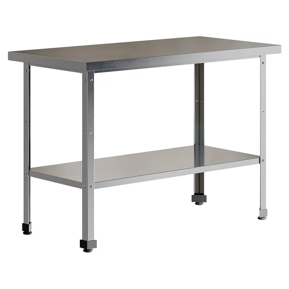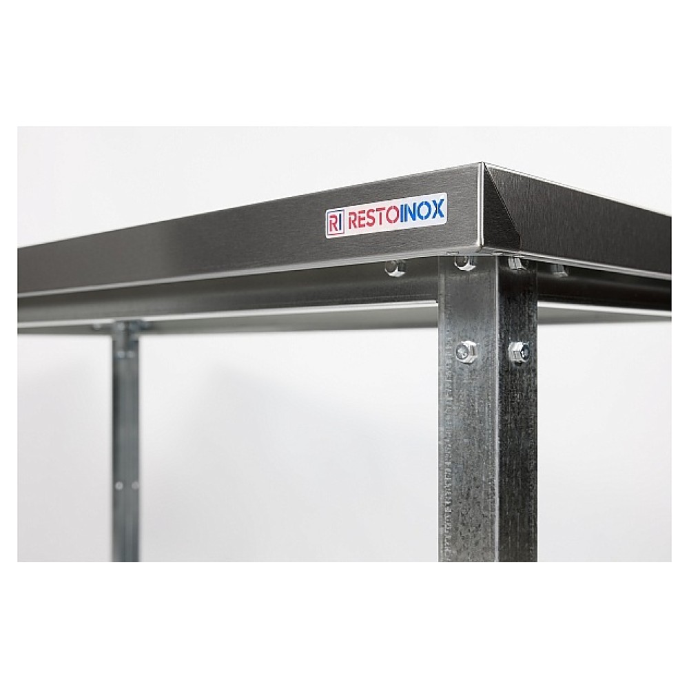 Производственный островной стол Restoinox СП-15/8-П-ЭК серии 800 предназначен для обработки продуктов питания, раскатки теста и хранения кухонного инвентаря, также для размещения малогабаритного оборудования на предприятиях общественного питания и торговли. Модель оснащена сплошной полкой. Ножки выполнены из уголка 40х40 мм из оцинкованной стали, рабочая поверхность - из нержавеющей стали Aisi 430, полка - из оцинкованной стали, столешница усилена листом ДСП.