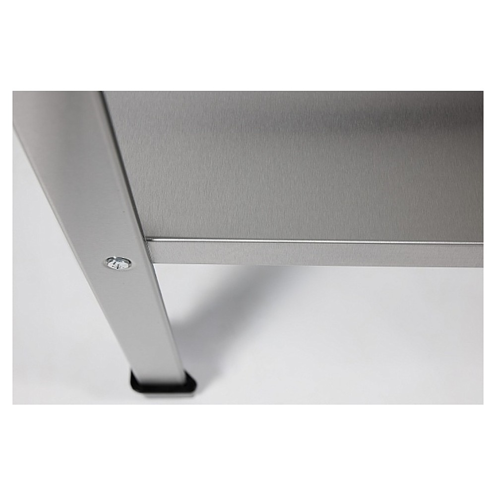 Производственный стол Restoinox СП-16/8-2БПЛ-ЭН предназначен для обработки продуктов питания, раскатки теста и хранения кухонного инвентаря, также для размещения малогабаритного оборудования на предприятиях общественного питания и торговли. Модель оснащена бортами с 2 сторон и сплошной полкой, усиленной ребром жесткости из нержавеющей стали. Ножки выполнены из уголка 40х40 мм из нержавеющей стали Aisi 430 с пуклевкой, рабочая поверхность и полка - из нержавеющей стали Aisi 430, столешница усилена листом ЛДСП.