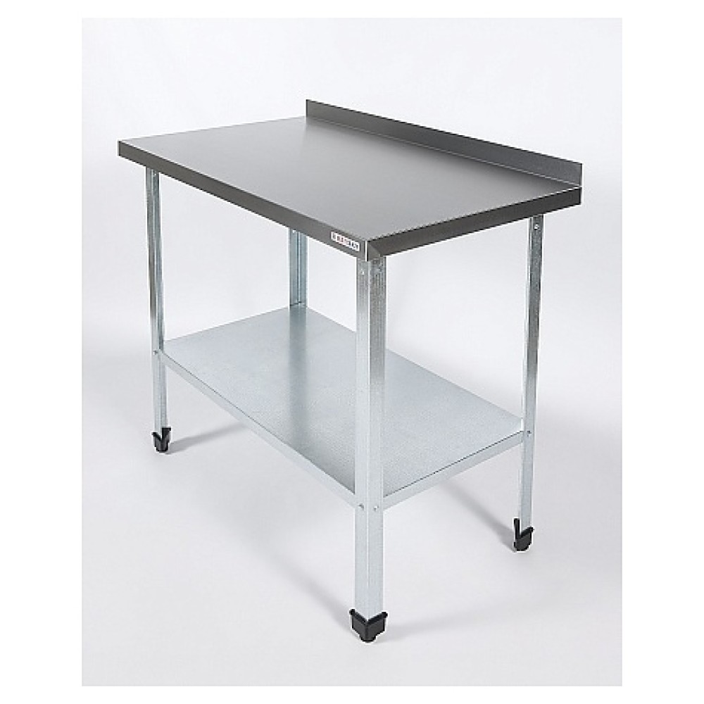Производственный островной стол Restoinox СП-18/8-БП-ЭК серии 800 предназначен для обработки продуктов питания, раскатки теста и хранения кухонного инвентаря, также для размещения малогабаритного оборудования на предприятиях общественного питания и торговли. Модель оснащена бортом и сплошной полкой, усиленной ребром жесткости из оцинкованной стали. Ножки выполнены из уголка 40х40 мм из оцинкованной стали, рабочая поверхность - из нержавеющей стали Aisi 430, полка - из оцинкованной стали, столешница усилена листом ДСП.