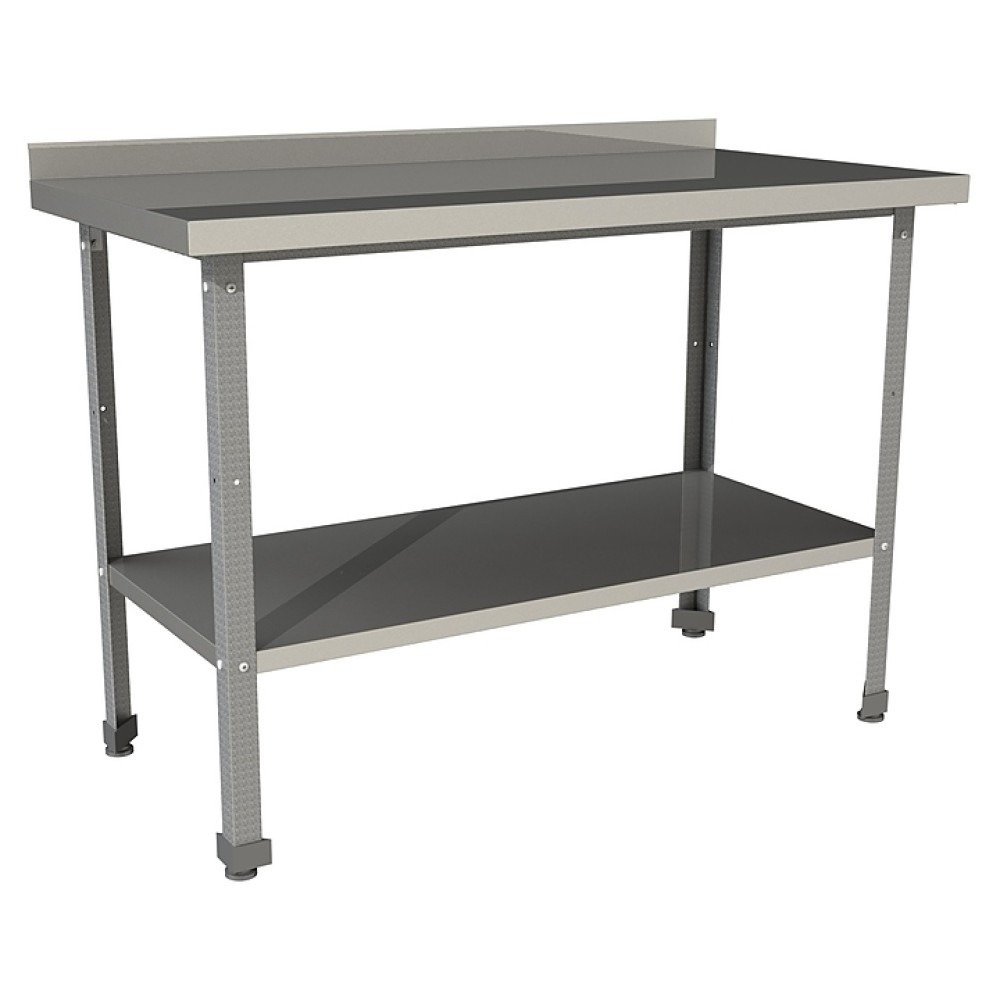 Производственный островной стол Restoinox СП-6/8-БП-ЭК серии 800 предназначен для обработки продуктов питания, раскатки теста и хранения кухонного инвентаря, также для размещения малогабаритного оборудования на предприятиях общественного питания и торговли. Модель оснащена бортом и сплошной полкой, усиленной ребром жесткости из оцинкованной стали. Ножки выполнены из уголка 40х40 мм из оцинкованной стали, рабочая поверхность - из нержавеющей стали Aisi 430, полка - из оцинкованной стали, столешница усилена листом ДСП.