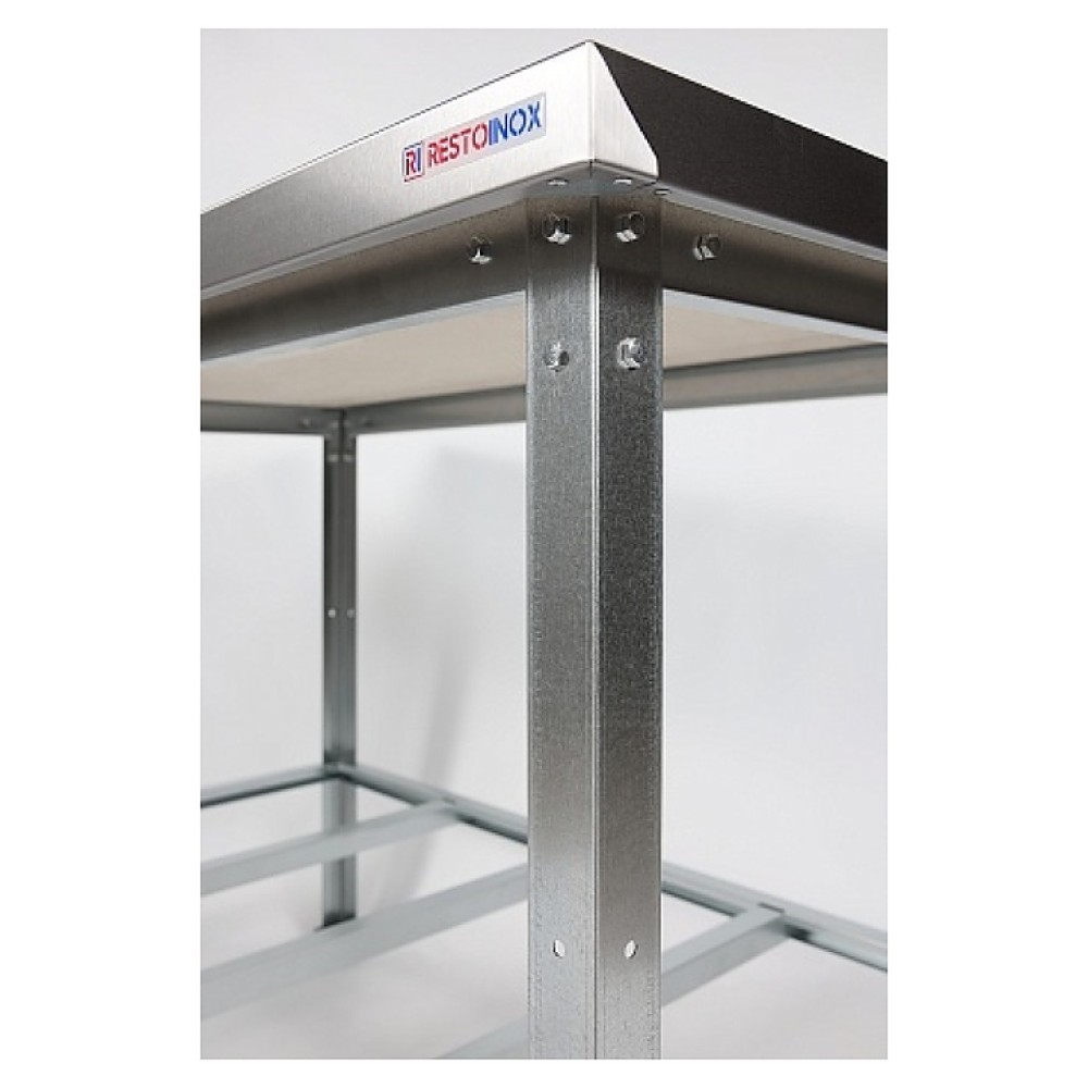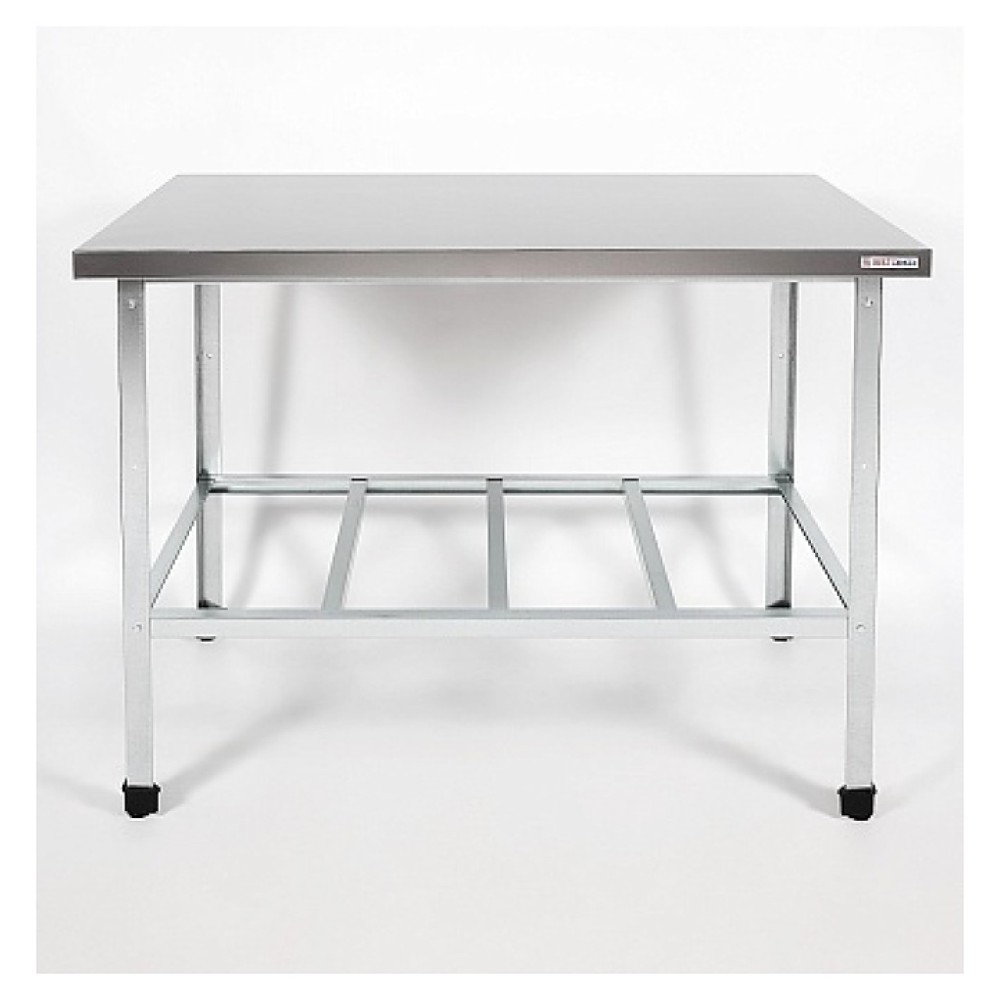 Производственный островной стол Restoinox СП-6/8-Р-ЭК предназначен для обработки продуктов питания, раскатки теста и хранения кухонного инвентаря, также для размещения малогабаритного оборудования на предприятиях общественного питания и торговли. Модель оснащена полкой-решеткой. Ножки выполнены из уголка 40х40 мм из оцинкованной стали, рабочая поверхность - из нержавеющей стали Aisi 430, решетка - из оцинкованной стали, столешница усилена листом ЛДСП.
