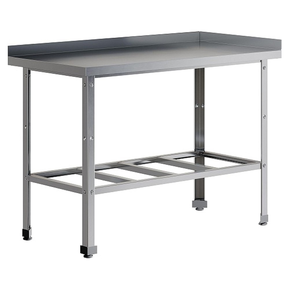 Производственный стол Restoinox СП-7/8-2БРП-ЭН предназначен для обработки продуктов питания, раскатки теста и хранения кухонного инвентаря, также для размещения малогабаритного оборудования на предприятиях общественного питания и торговли. Модель оснащена 2 бортами и полкой-решеткой. Ножки выполнены из уголка 40х40 мм из нержавеющей стали Aisi 430 с пуклевкой, рабочая поверхность и решетчатая полка - из нержавеющей стали Aisi 430, столешница усилена листом ЛДСП.
