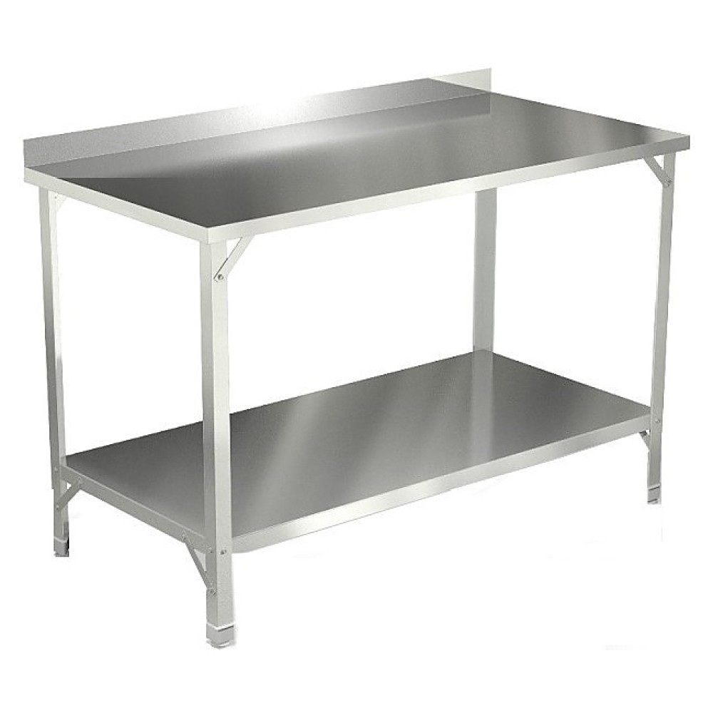 Производственный пристенный стол Техно-ТТ AppetiTT СПСП-957ц предназначен для обработки продуктов питания, раскатки теста и хранения кухонного инвентаря на предприятиях общественного питания и торговли. Модель оснащена бортом и сплошной полкой. Столешница выполнена из нержавеющей стали AISI 430, подложка - из ДСП, каркас разборный - из оцинкованной стали.