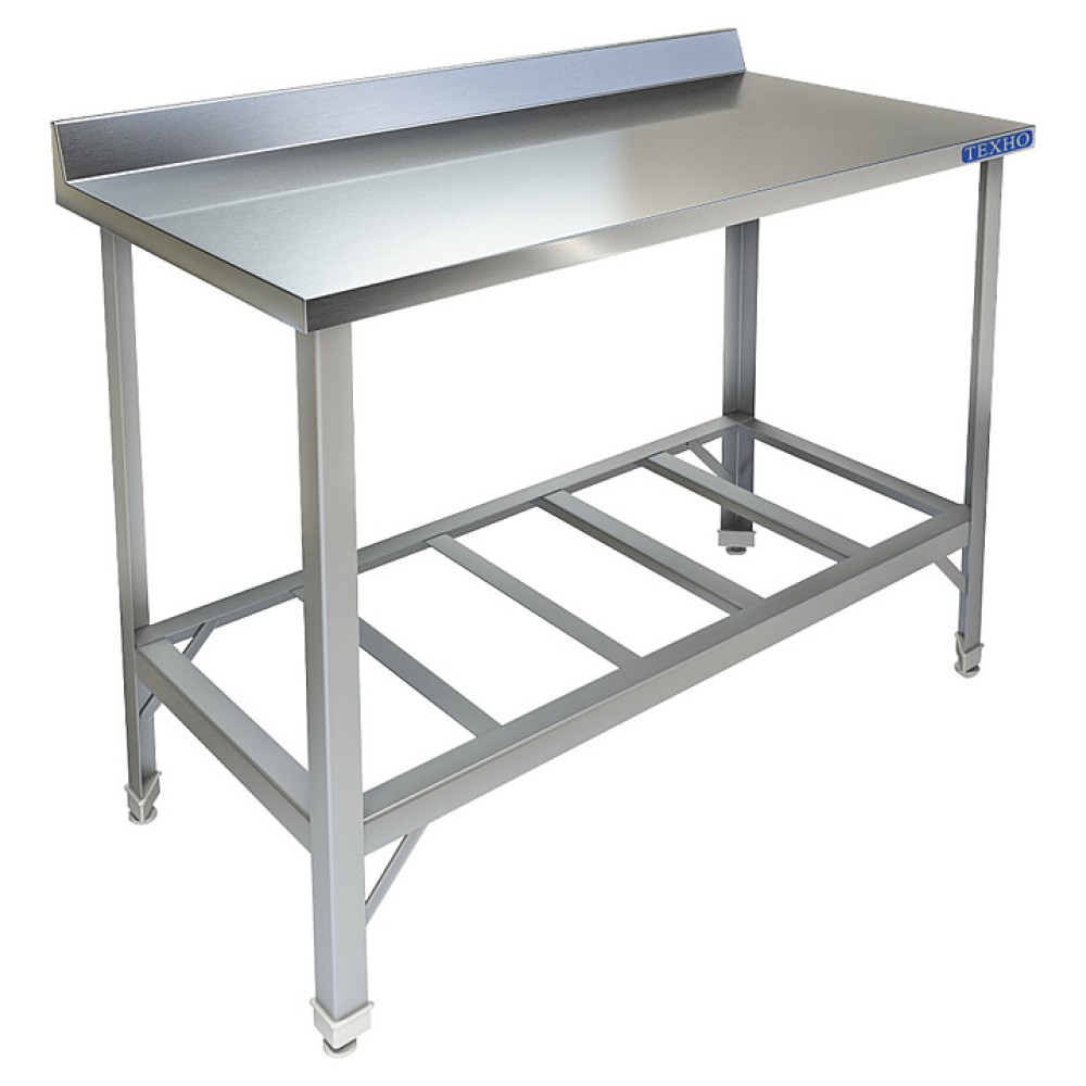 Производственный стол Техно-ТТ СПП-959/808 предназначен для разделки и обработки пищевых продуктов, а также для расстановки и хранения посуды и кухонного инвентаря на предприятиях общественного питания и торговли. Модель оснащена регулируемыми по высоте ножками, что позволяет компенсировать неровности пола. Разборный каркас выполнен из конструкционного профиля-уголка нержавеющей стали AISI 430 40x40x2 мм, полка-решетка и столешница - из нержавеющей стали AISI 430.