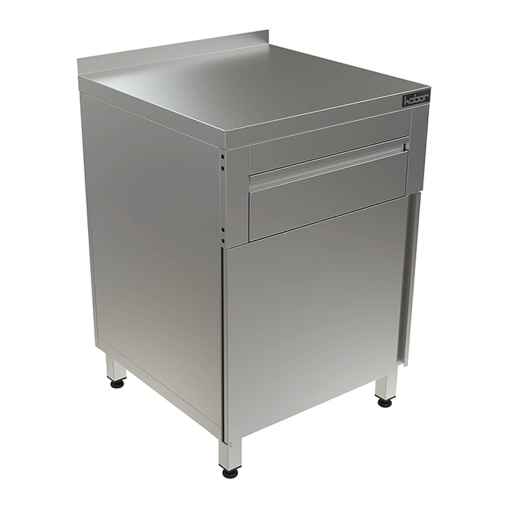 Стол для овощей Кобор СПБЯ-90/70/Р имеет столешницу, изготовленную из высококачественной нержавеющей стали, а также во избежание прогибов укрепленную листом ориентированно стружечной плитой толщиной 16 мм. Стол оснащен ящиками и распашными дверями. Каркас стола изготовлен из нержавеющей квадратной трубы 40х40 мм, ножки регулируются по высоте позволяя избежать наклона рабочей поверхности. Товар поставляется в разобранном виде и в упаковке для облегчения транспортировки.