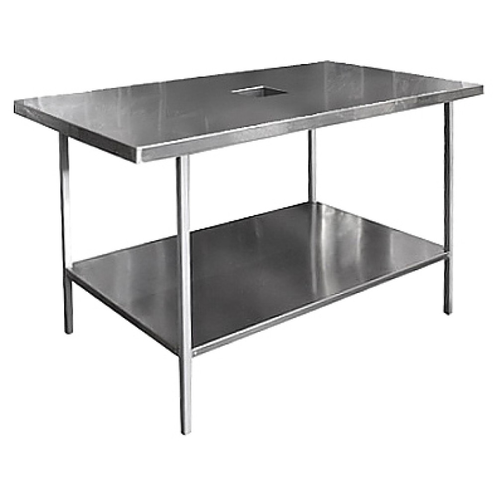 Стол для хлеборезки Пищевые Технологии ЛП-7/46/2 используется на предприятиях общественного питания и торговли. Модель оснащена отверстием с патрубком. Каркас выполнен из профильной трубы, окрашенной порошковой краской, столешница - из нержавеющей стали с усилением из листа ЛДСП.