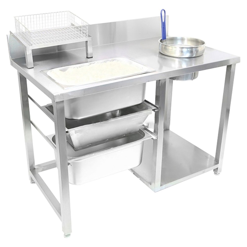 Стол для панировки RoboLabs SR-P1-120 бизнес-класса используется на предприятиях общественного питания и торговли. Модель с ручным просеиванием оснащена съемной полкой под корзину. Корпус и столешница выполнены из нержавеющей стали AISI 430.