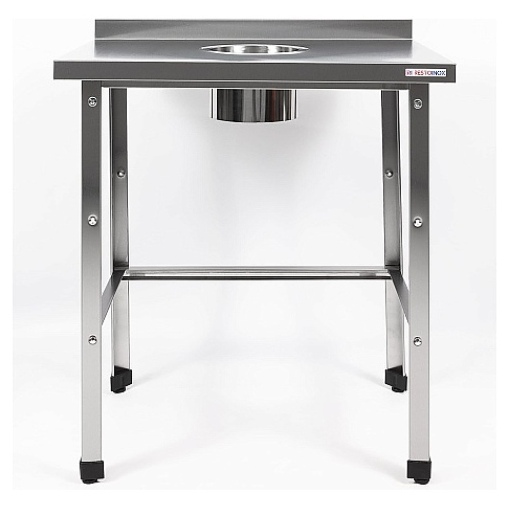 Стол Restoinox СПО-7/6-БО-ЭН серии 600 предназначен для сбора пищевых отходов на предприятиях общественного питания и торговли. Модель оснащена регулируемыми по высоте опорами и трехсторонней обвязкой. Ножки выполнены из уголка 40х40 мм из нержавеющей стали Aisi 430 с пуклевкой, рабочая поверхность и обвязка - из нержавеющей стали Aisi 430, столешница усилена листом ЛДСП.