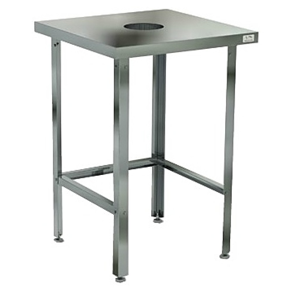 Стол для сбора пищевых отходов Кобор СРО-60/60/430 имеет столешницу, изготовленную из высококачественной нержавеющей стали, а также во избежание прогибов укрепленную листом ЛДСП толщиной 16 мм. В столешнице имеется отверстие 150 мм, под которым устанавливают емкость для сбора отходов. Ножки стола исполнены в виде уголка 40х40 мм из оцинкованной стали, также регулируются по высоте во избежание наклона рабочей поверхности.