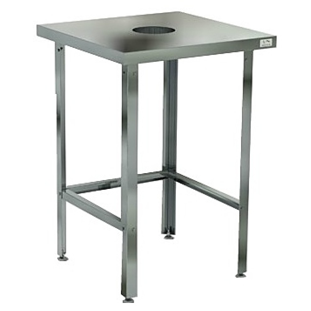 Стол для сбора пищевых отходов Кобор СРО-60/70 имеет столешницу изготовленную из высококачественной нержавеющей стали, а также во избежании прогибов укрепленную листом ЛДСП толщиной 16 мм. В столешнице имеется отверстие 150 мм, под которым устанавливают емкость для сбора отходов. Ножки стола исполнены в виде уголка 40х40 мм из оцинкованной стали, также регулируются по высоте во избежание наклона рабочей поверхности.