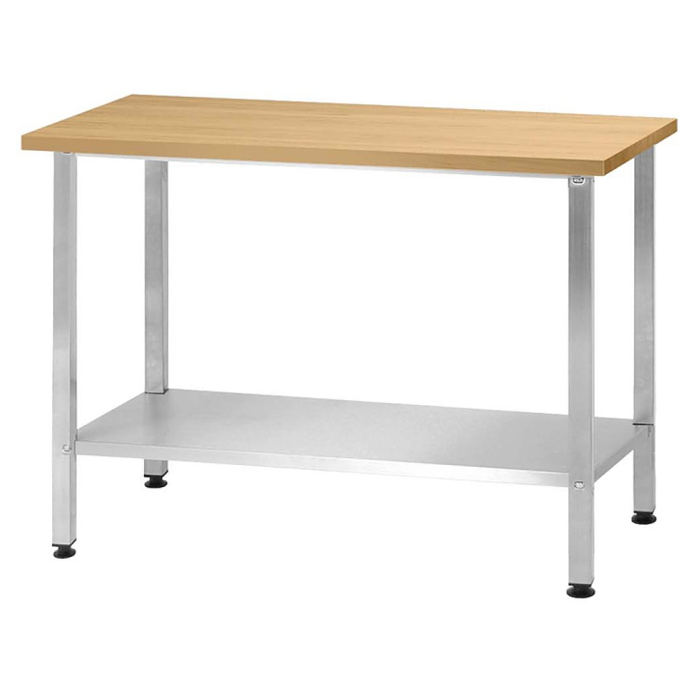 Кондитерский стол Mecon Norma Inox СПРн предназначен для разделывания и обработки пищевых продуктов, раскатки теста, а также в качестве вспомогательной поверхности для кухонного оборудования на предприятиях пищевой промышленности, общественного питания и торговли. Модель оснащена усиленной сплошной полкой и регулируемыми по высоте полиамидными опорами. Каркас выполнен из профильной трубы 40х40 мм нержавеющей стали с базирующими пуклевками, столешница - из бука, полка - из нержавеющей стали.