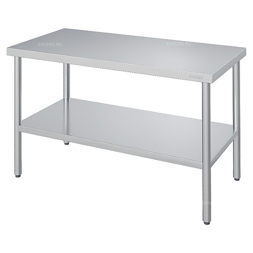 Производственный стол ATESY СР-П-1400.800-02 серии Престиж используется на предприятиях общественного питания и торговли для разделывания и обработки пищевых продуктов, а также в качестве вспомогательной поверхности для кухонного оборудования. Каркас выполнен из круглой трубы зеркальной нержавеющей стали AISI 201 диаметром 40 мм, столешница и полка - из нержавеющей стали AISI 430, столешница укреплена листом ламинированной древесностружечной плиты с внутренней стороны.