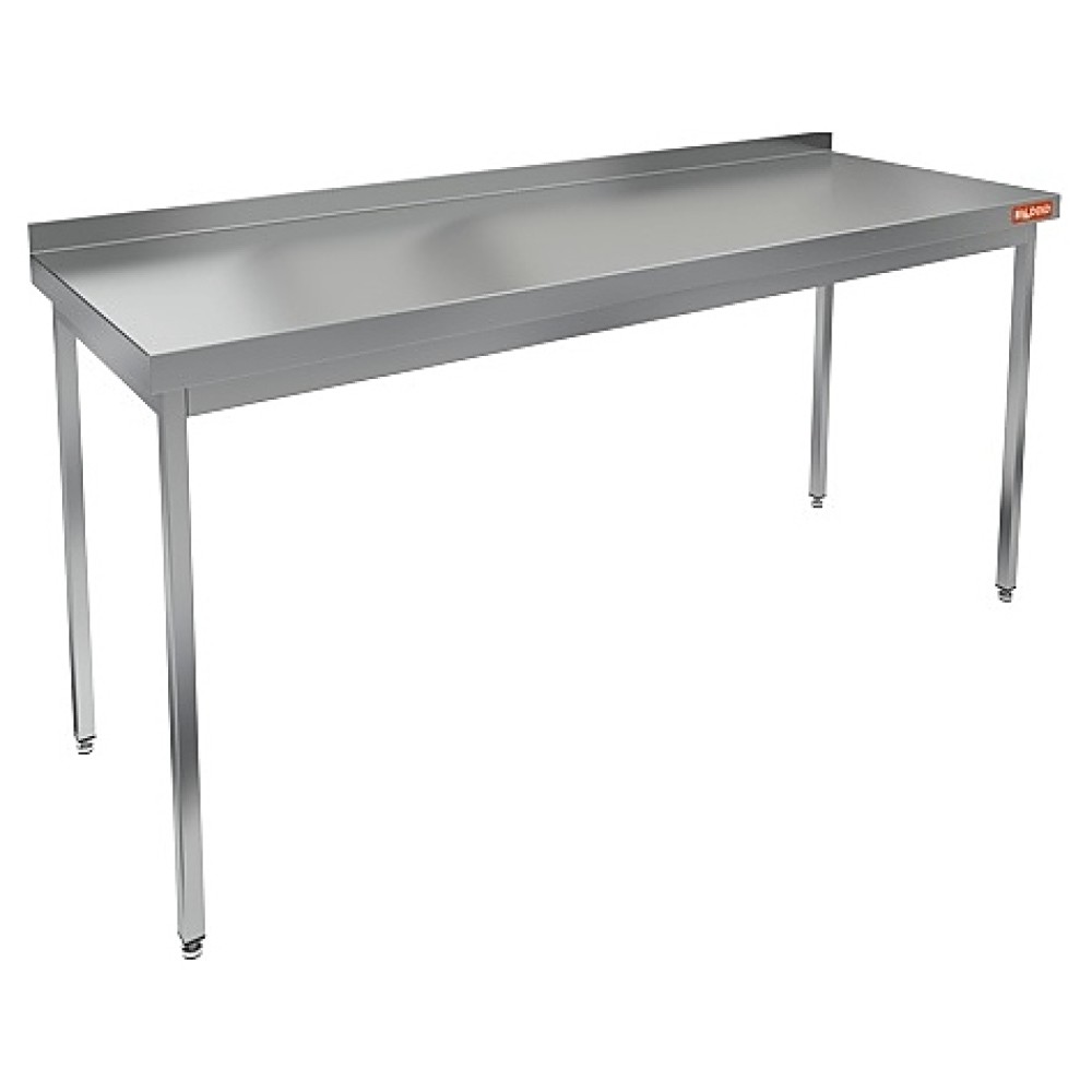 Столешница выполнена из нержавеющей стали толщиной 0,8 мм, усилена листом ДСП, опорные ножки - из трубы 40х40 мм из нержавеющей стали.