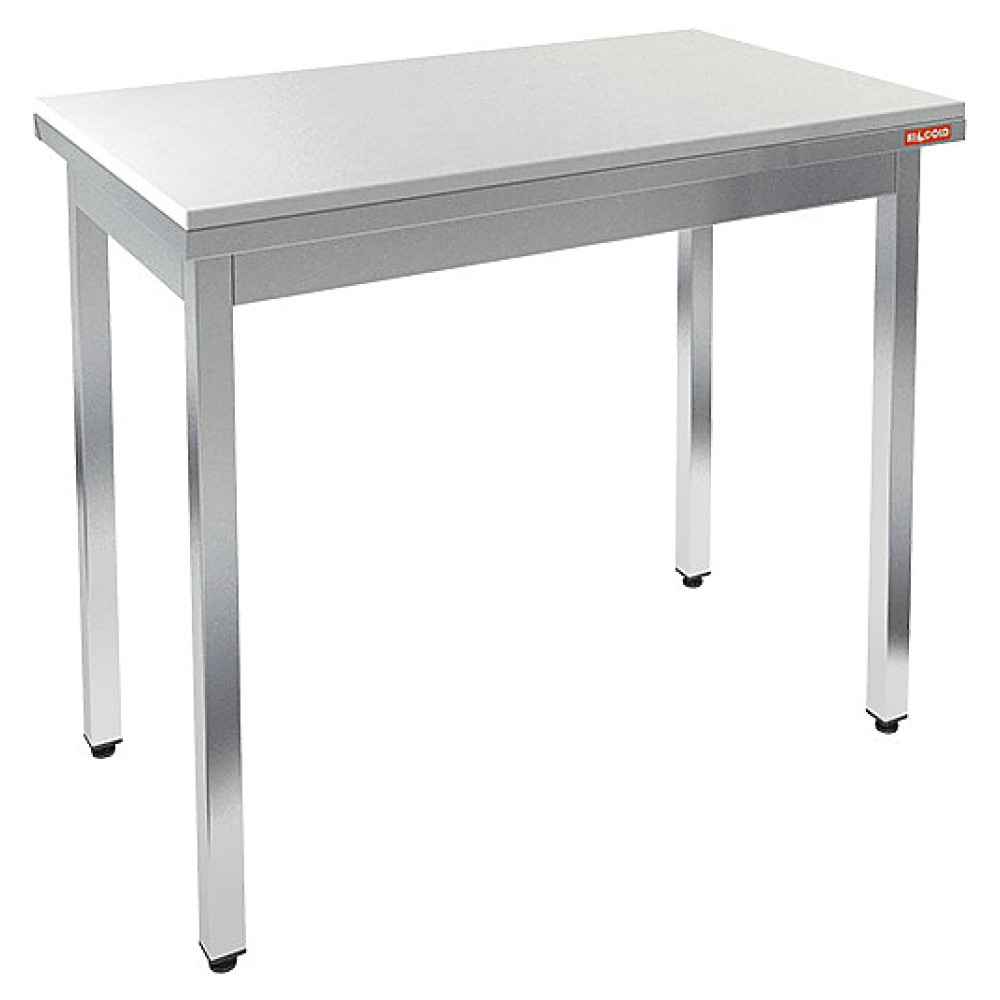 Столешница выполнена из полипропилена, опорные ножки - из трубы 40х40 мм из нержавеющей стали.