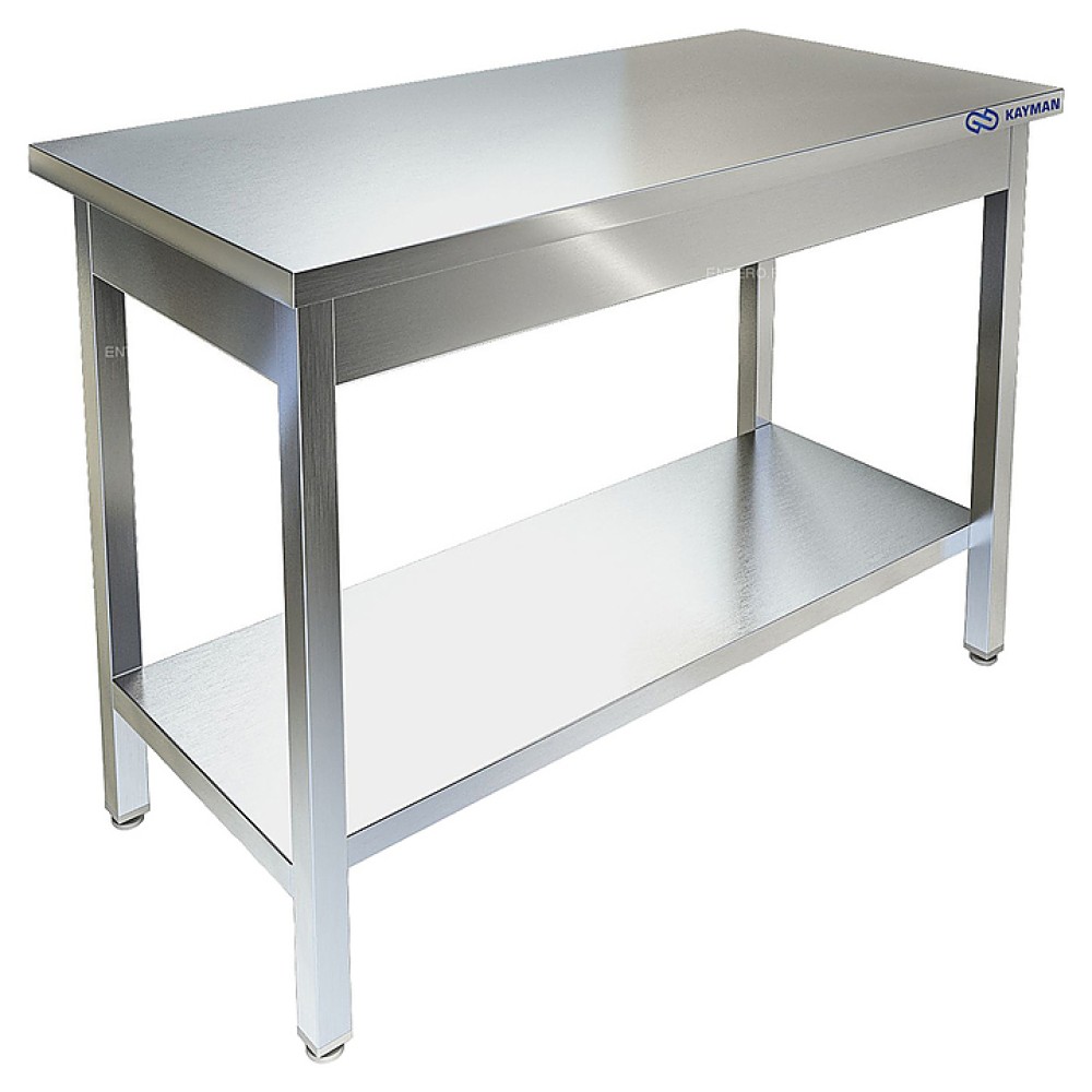 Производственный стол KAYMAN СЦ-222/1408 используется на предприятиях общественного питания и торговли для раскатки теста и обработки ингредиентов для приготовления блюд, а также как дополнительное место для установки и хранения кухонных приборов, инвентаря и сухих продуктов. Каркас выполнен из нержавеющей трубы AISI 430 40х40 мм толщиной 1.2 мм, полка и столешница - из нержавеющей стали AISI 430 толщиной 0,8 мм, столешница усилена листом ЛДСП толщиной 16 мм.