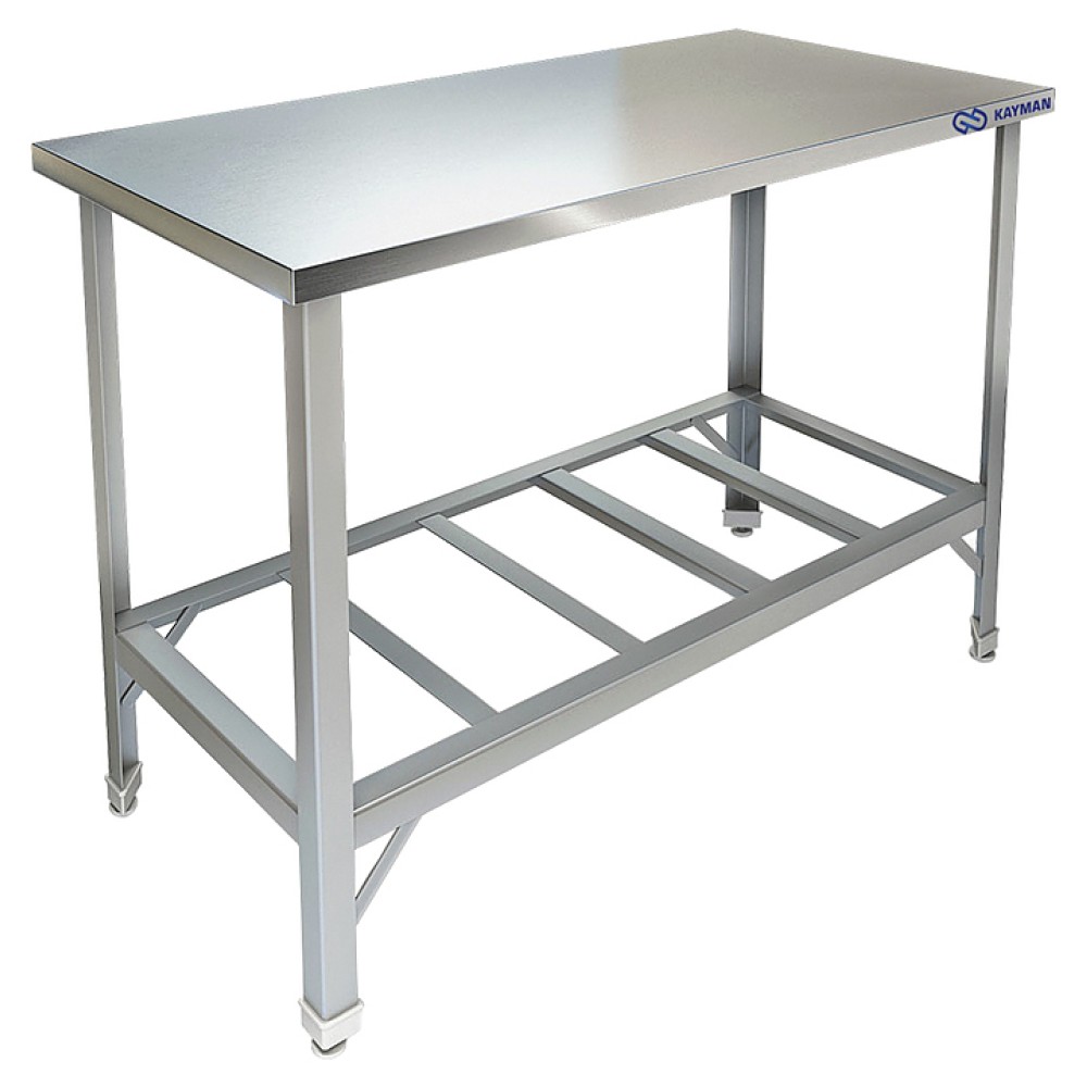 Производственный стол KAYMAN СЦ-255/1207 предназначен для использования на предприятиях общественного питания и торговли для раскатки теста и обработки ингредиентов для приготовления блюд, а также как дополнительное место для установки и хранения кухонных приборов, инвентаря и сухих продуктов. Каркас - уголок из оцинкованной стали 40х40 мм, толщиной стенки 1,5 мм, полка-решетка – из оцинковки, толщиной 0,8 мм, столешница - из нержавеющей стали AISI 430, толщиной 0,8 мм, столешница усилена листом ЛДСП 16 мм.
