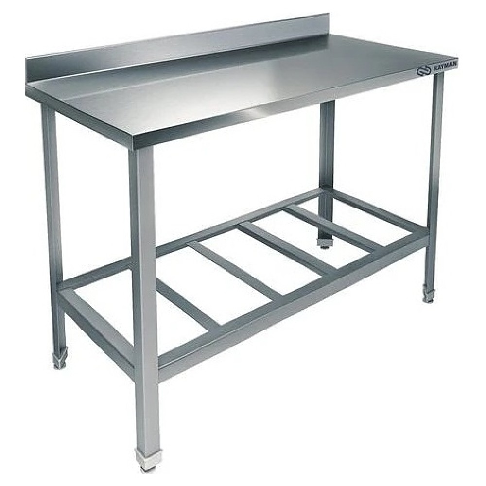 Производственный стол KAYMAN СП-244/0706 используется на предприятиях общественного питания и торговли для раскатки теста и обработки ингредиентов для приготовления блюд, а также как дополнительное место для установки и хранения кухонных приборов, инвентаря и сухих продуктов. Модель оснащена полкой-решеткой. Каркас изготовлен из нержавеющего уголка AISI 430 толщиной 1,5 мм, полка и столешница - из нержавеющей стали AISI 430, усиленной листом ЛДСП для повышения устойчивости.