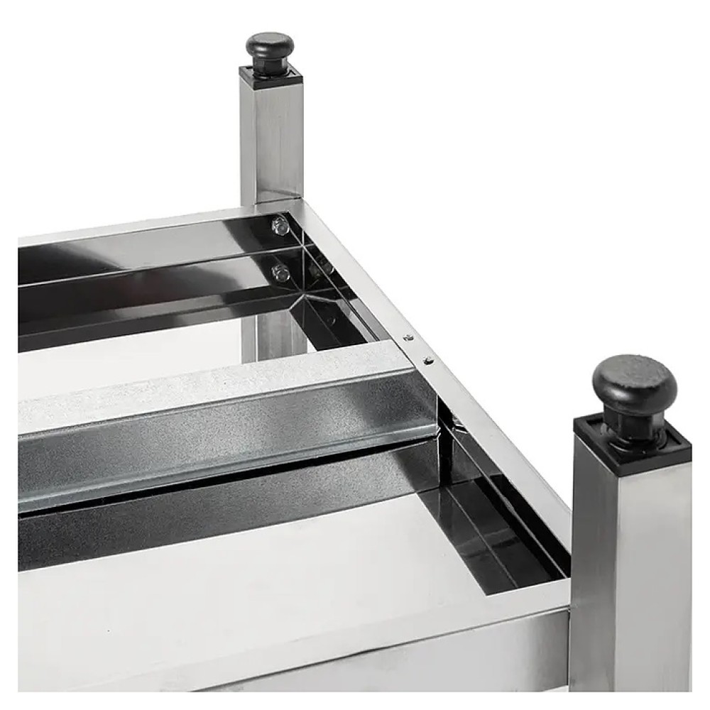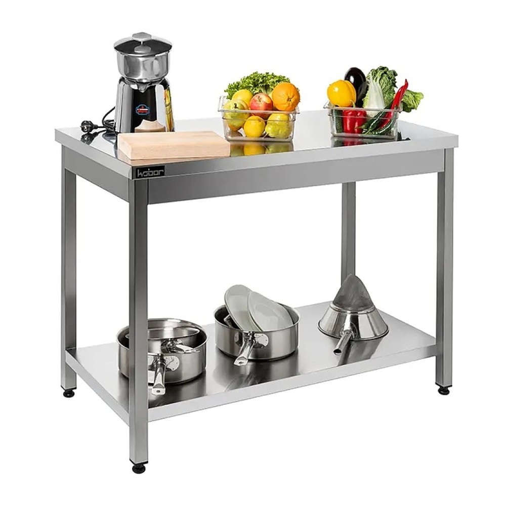 Производственный стол Кобор СПР-60/60/П предназначен для обработки продуктов питания и хранения кухонного инвентаря на предприятиях общественного питания и торговли. Разборный каркас выполнен из оцинкованной стальной квадратной трубы 40х40 мм, столешница - из нержавеющей стали AISI 430 с усилением из ЛДСП.