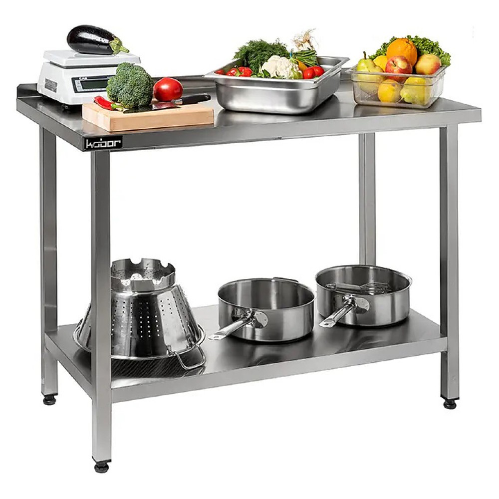 Производственный стол Кобор СПРБ-140/70/П предназначен для обработки продуктов питания и хранения кухонного инвентаря на предприятиях общественного питания и торговли. Разборный каркас выполнен из нержавеющей квадратной трубы 40х40 мм, столешница - из нержавеющей стали AISI 430 с усилением из ЛДСП.