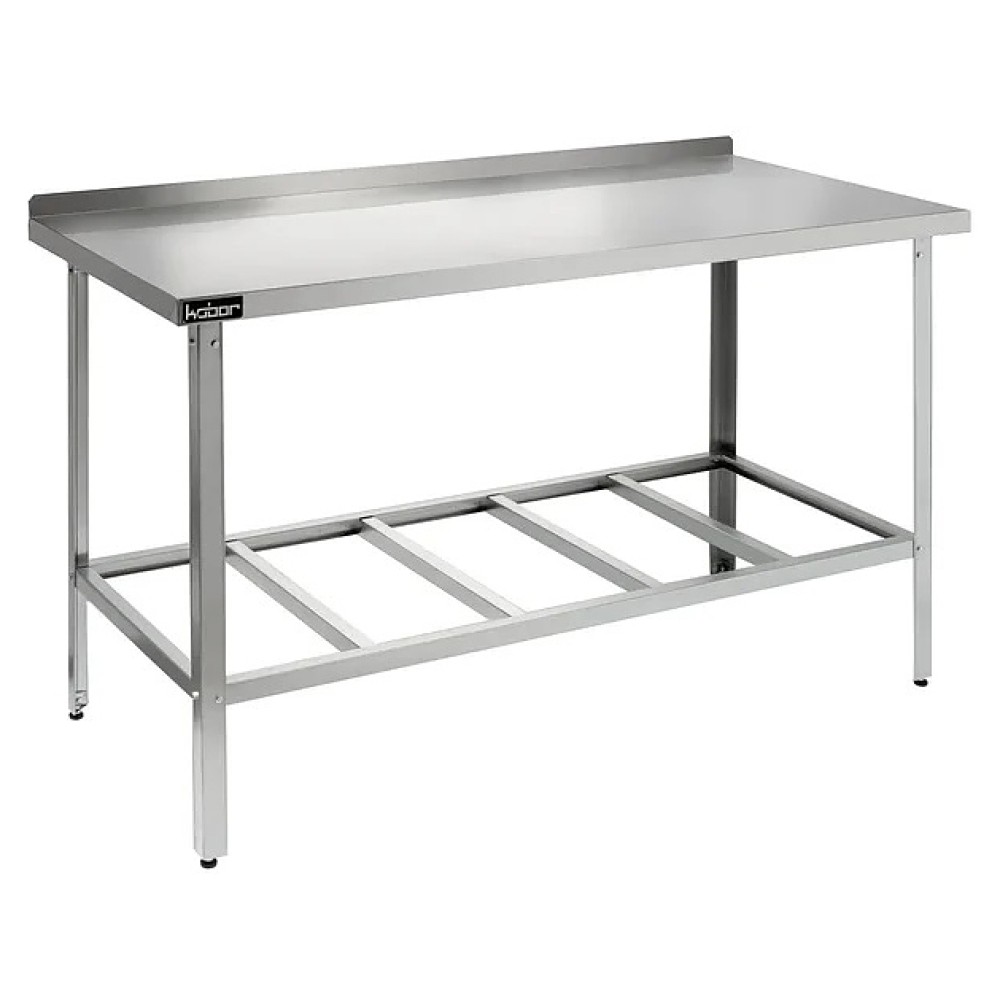 Пристенный разделочный стол Kобор SALE СРНБ-120/60 предназначен для обработки продуктов питания, раскатки теста и хранения кухонной техники на предприятиях общественного питания и пищевой промышленности. Каркас выполнен из оцинкованной стали толщиной 0,8 мм, столешница - из нержавеющей стали AISI430 толщиной 0,8 мм с усилением ЛДСП 16 мм, ножки - из уголка 40х40 мм из оцинкованной стали толщиной 0,8 мм
